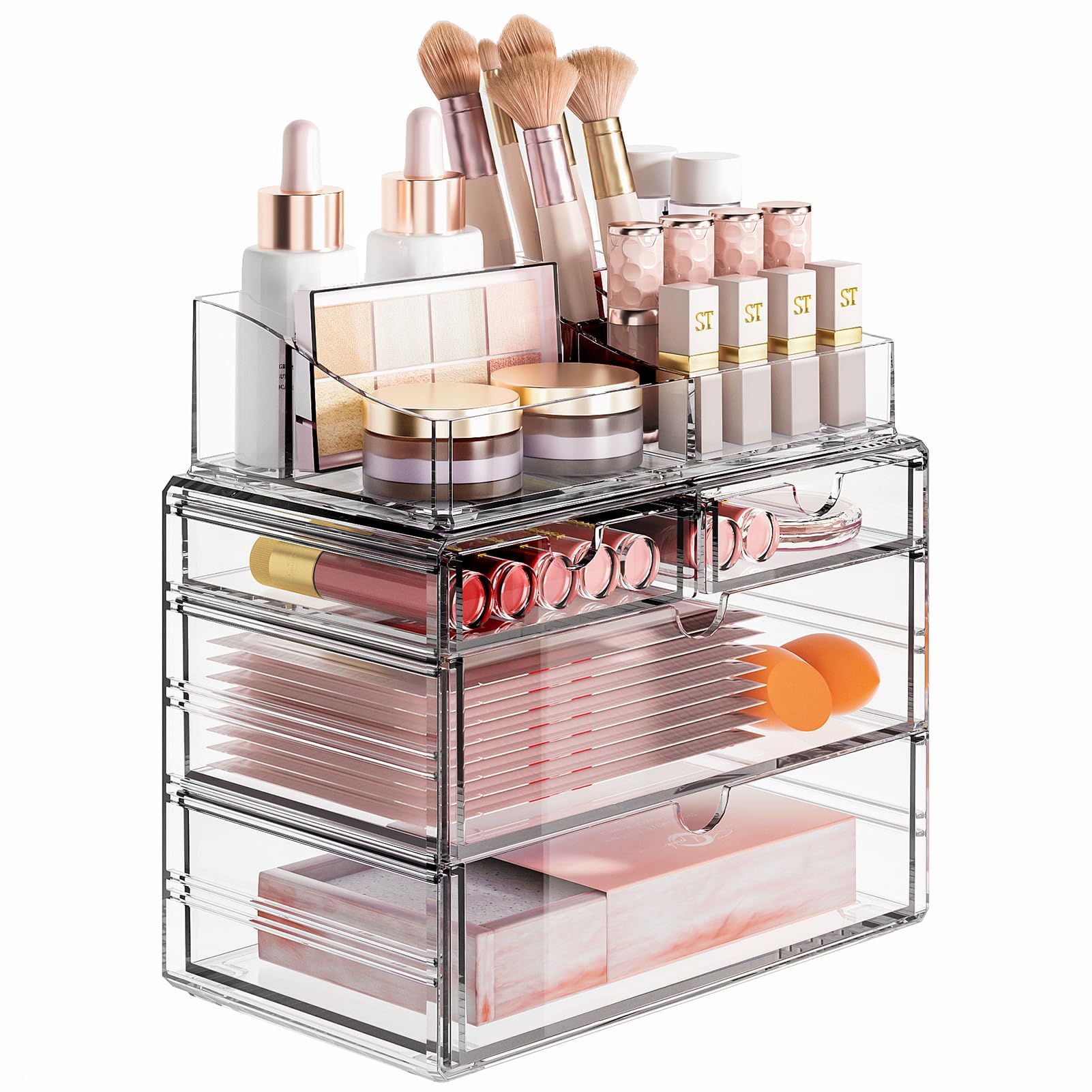 Paquete de 6 organizadores de maquillaje apilables, organizador de maquillaje acrílico de 4.4 pulgadas de alto y cajón de almacena