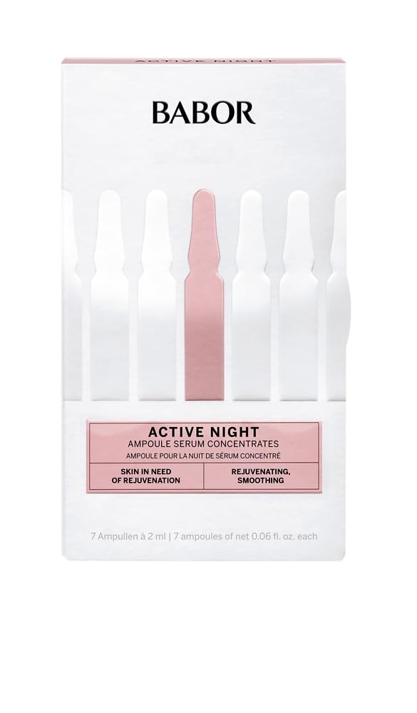 BABOR Concentrados de suero de ampolla activa nocturna, suero de ácido hialurónico, tratamiento nocturno hidratante, para piel sec