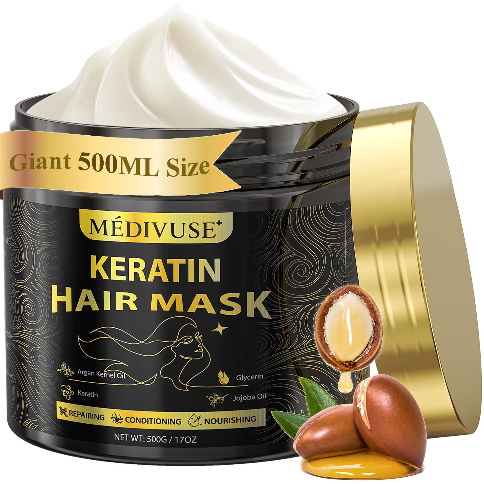 Mascarilla capilar de queratina y colágeno con aceite de argán, acondicionador de reparación profunda para cabello seco y dañado,