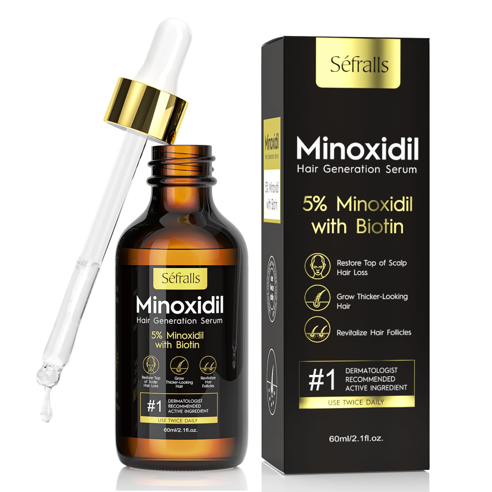 Aceite de suero de crecimiento del cabello de minoxidil al 5% para hombres y mujeres, suero de biotina para el cabello, tratamient