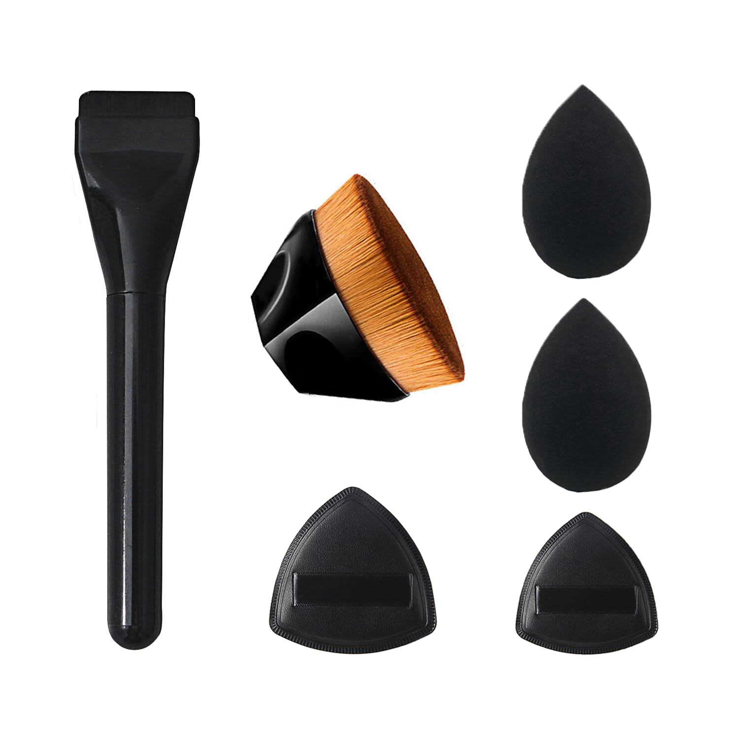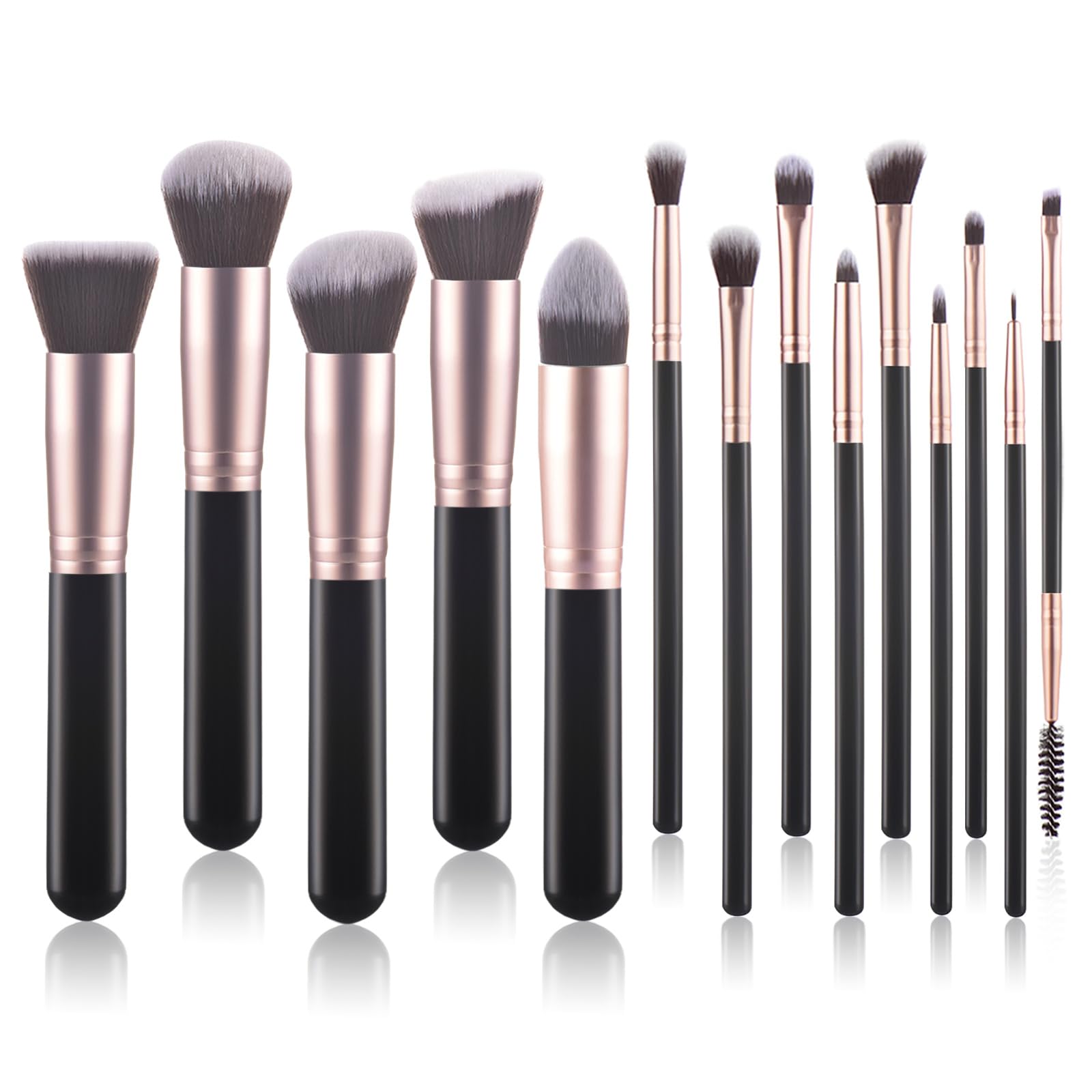 BS-MALL Juego de 14 brochas de maquillaje con esponja de maquillaje de doble cara, cepillo de base y esponja para polvo, colección