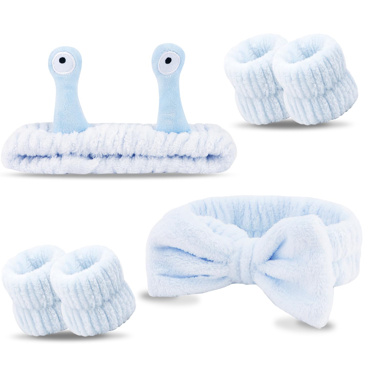 SuPoo Diadema de lavado facial de caracol gris, divertida diadema de spa para el cuidado de la piel con bonitos ojos de antena hin