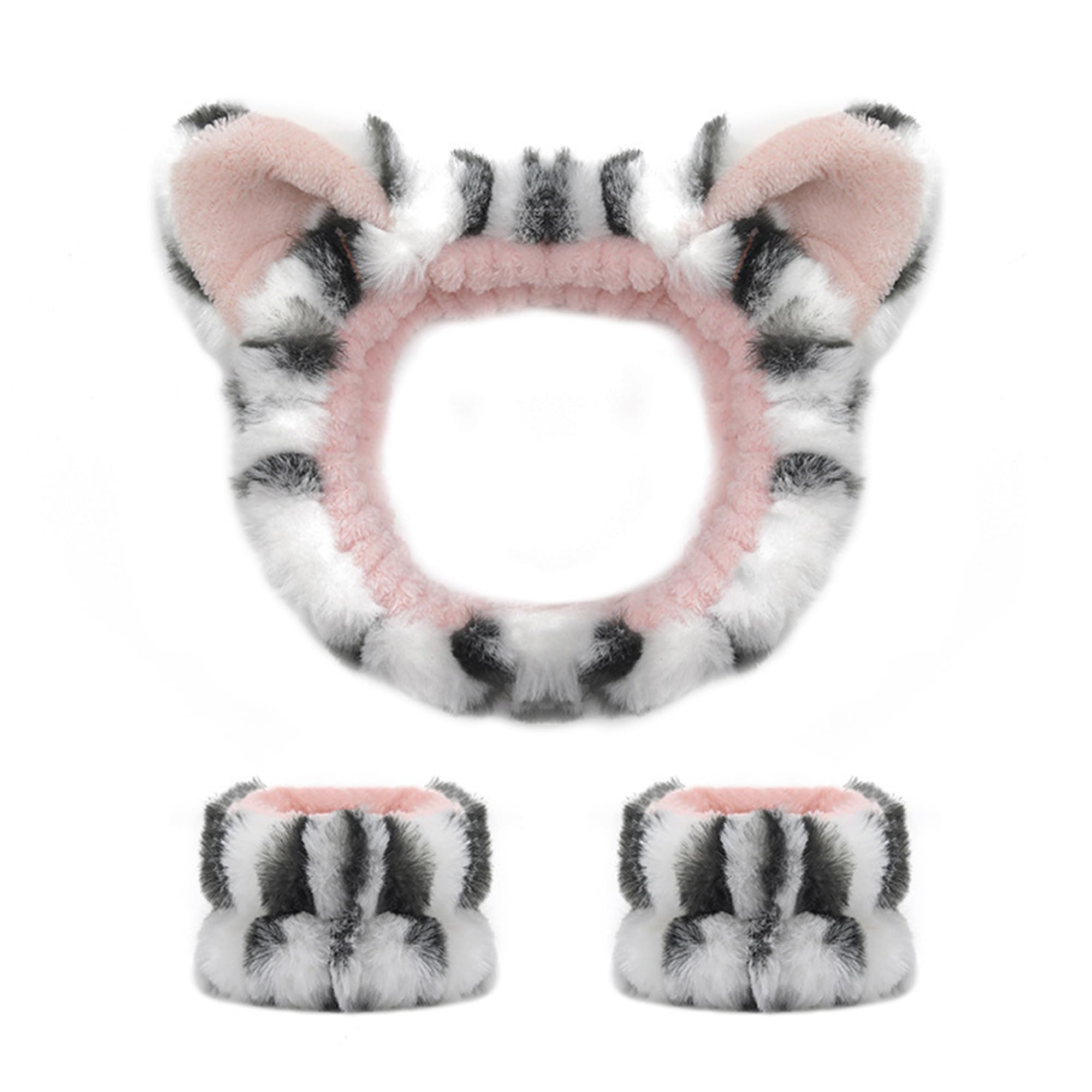 AEGYPIUS Juego de diadema y pulsera para lavado facial, 3 piezas de diadema de spa y pulsera con orejas de tigre