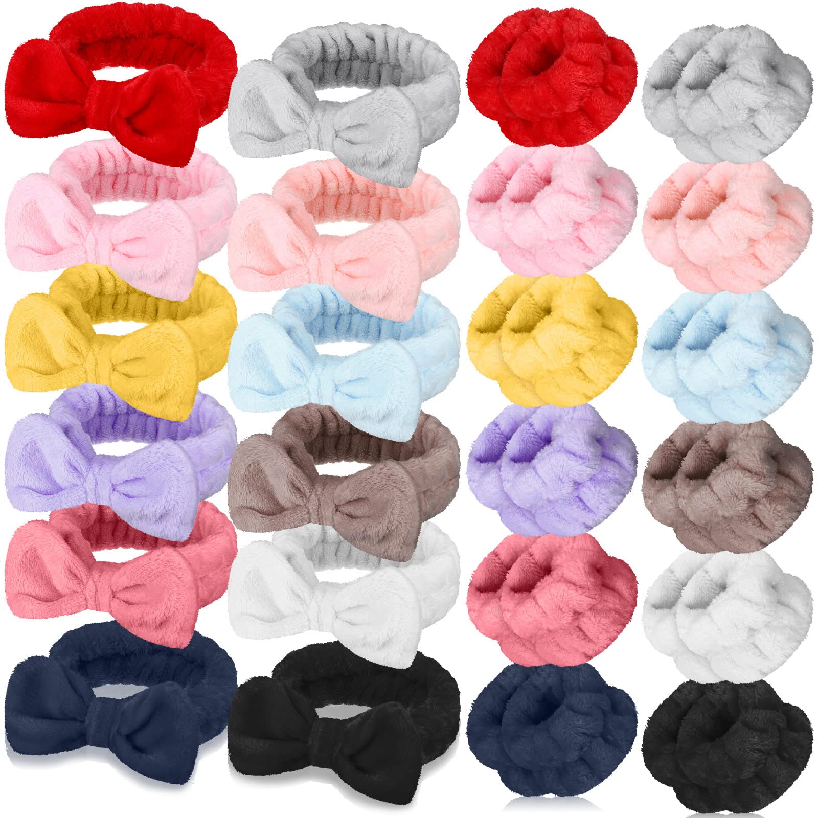 Riceshoot 24 diademas de spa con lazo para el cabello para lavar la cara, mujeres, cuidado de la piel, diadema elástica de maquill