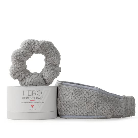 VOLO Luna – Juego de diadema y coletero de spa gris para mujer, accesorios para el cabello de toalla para maquillaje, lavado de ca