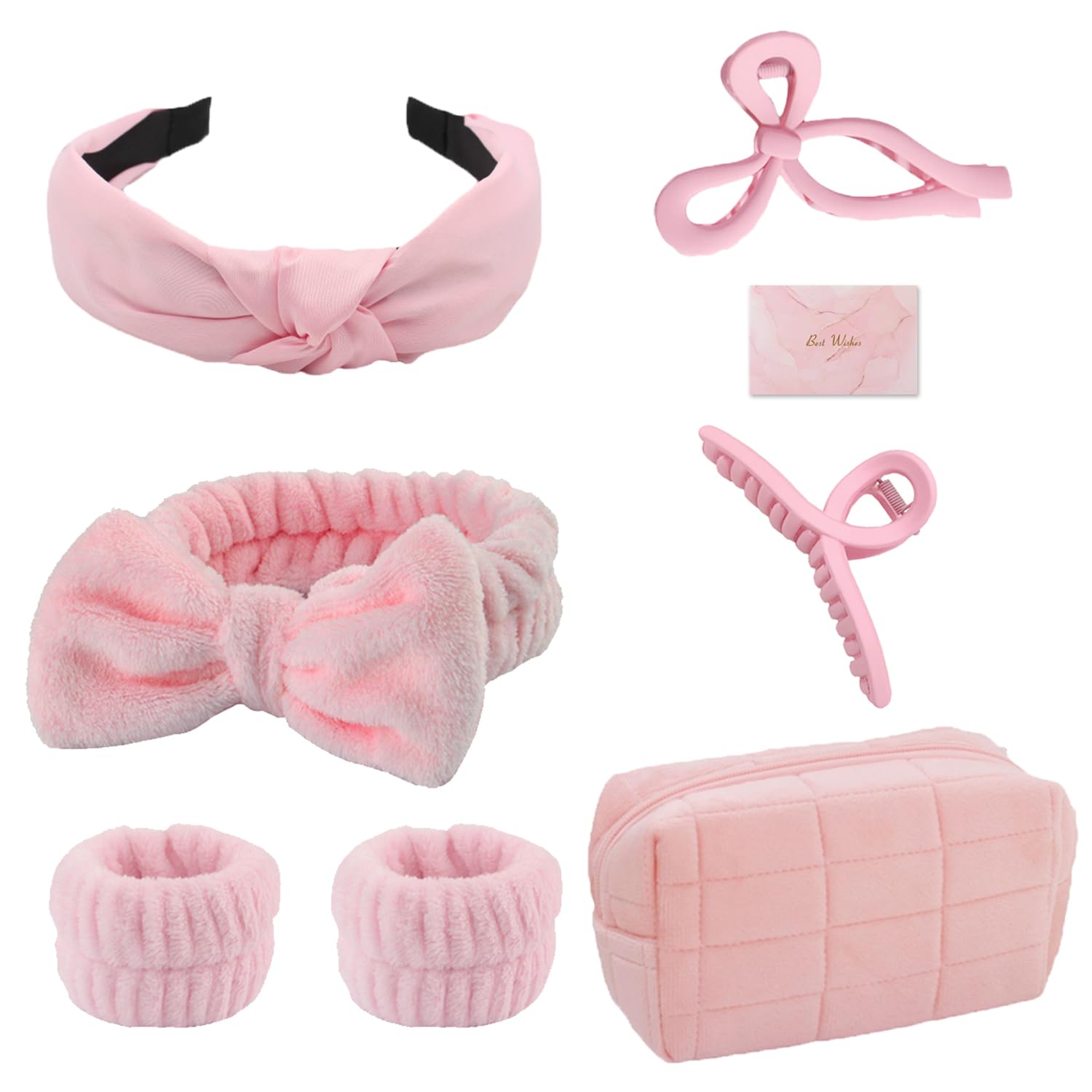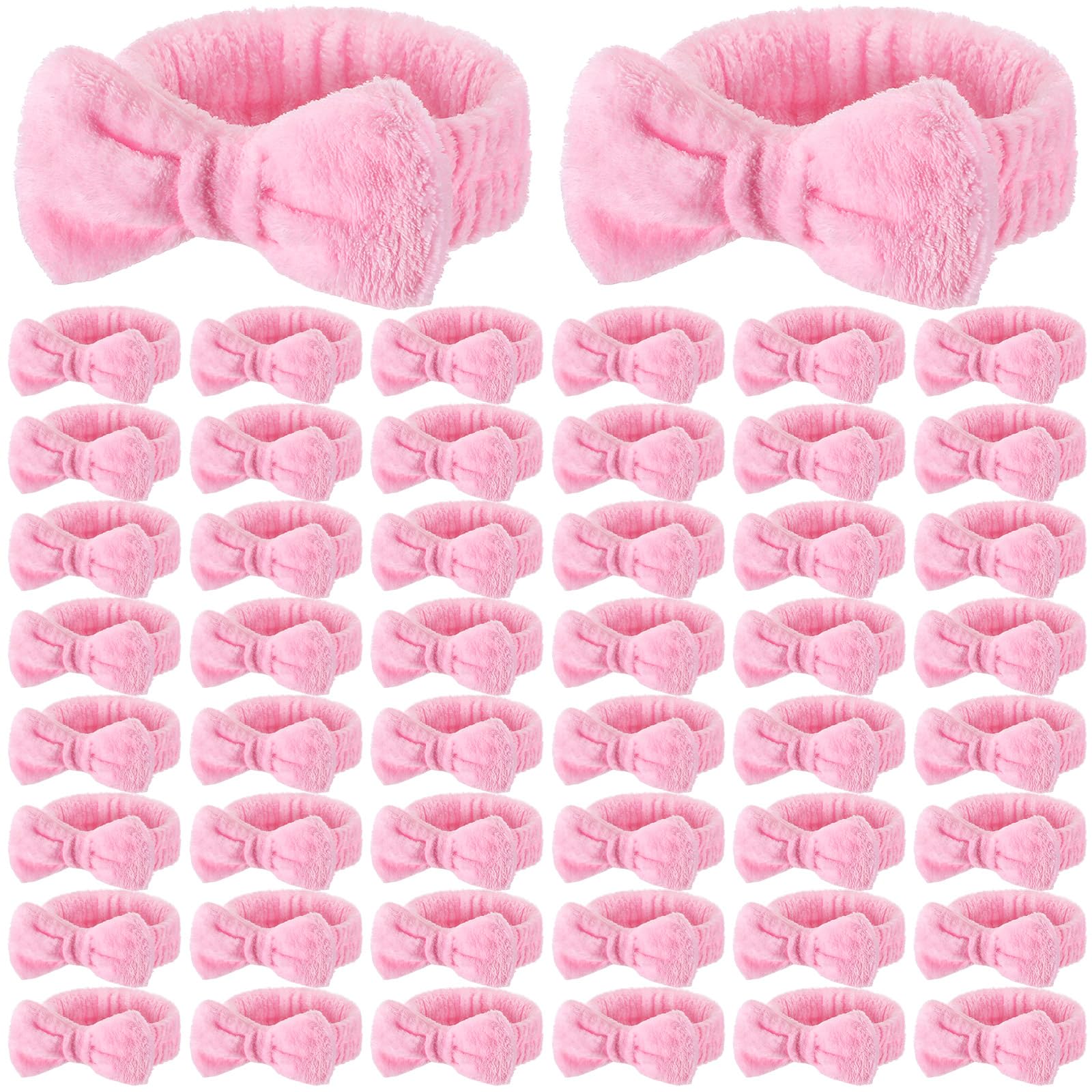 50 diademas de spa rosadas a granel, suministros para fiestas de pijamadas de spa, suministros para lavar la cara con lazo extraíb