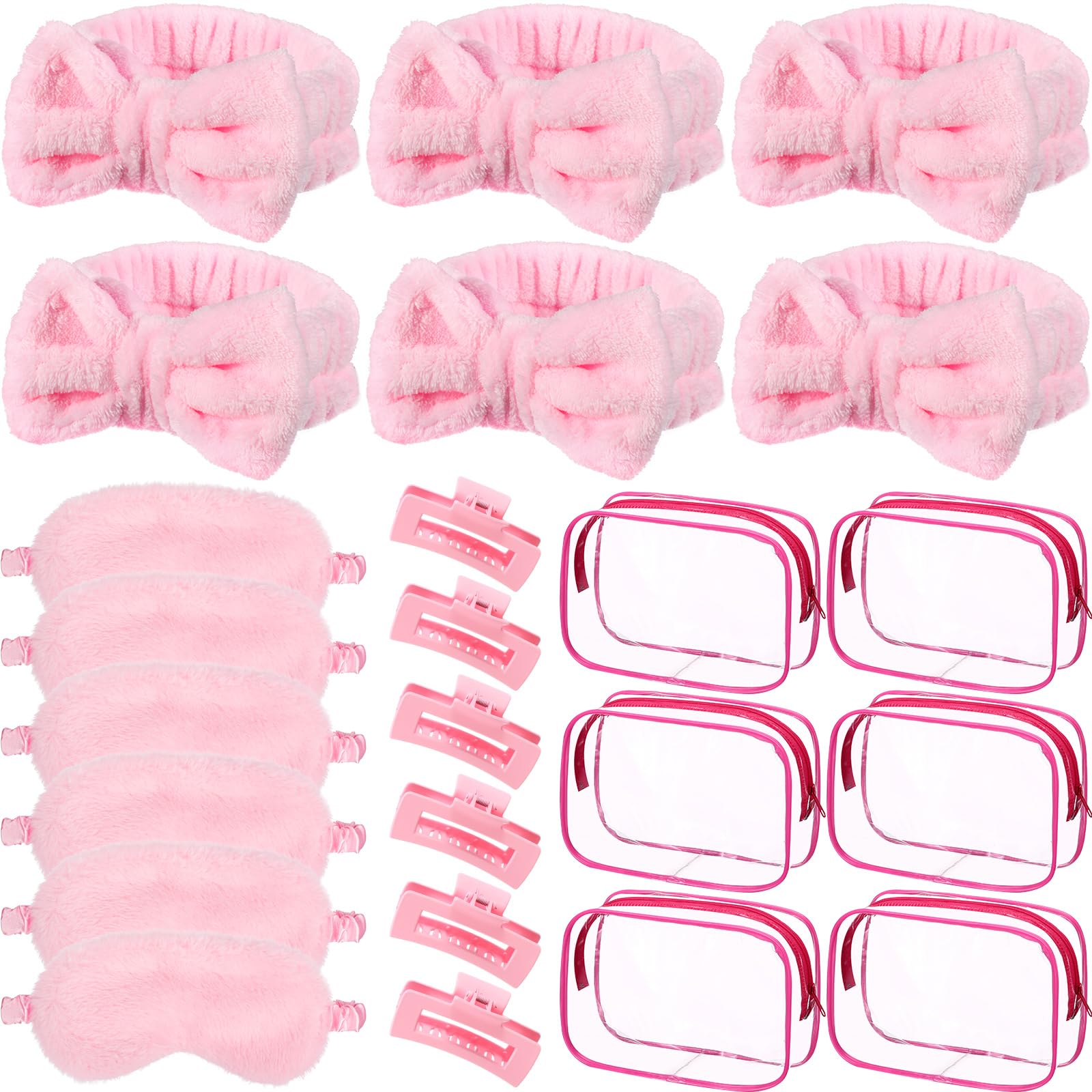 Hoteam 24 piezas de recuerdos de fiesta rosas para dormir durante la fiesta, 6 diademas de spa, 6 máscaras de ojos de felpa para d
