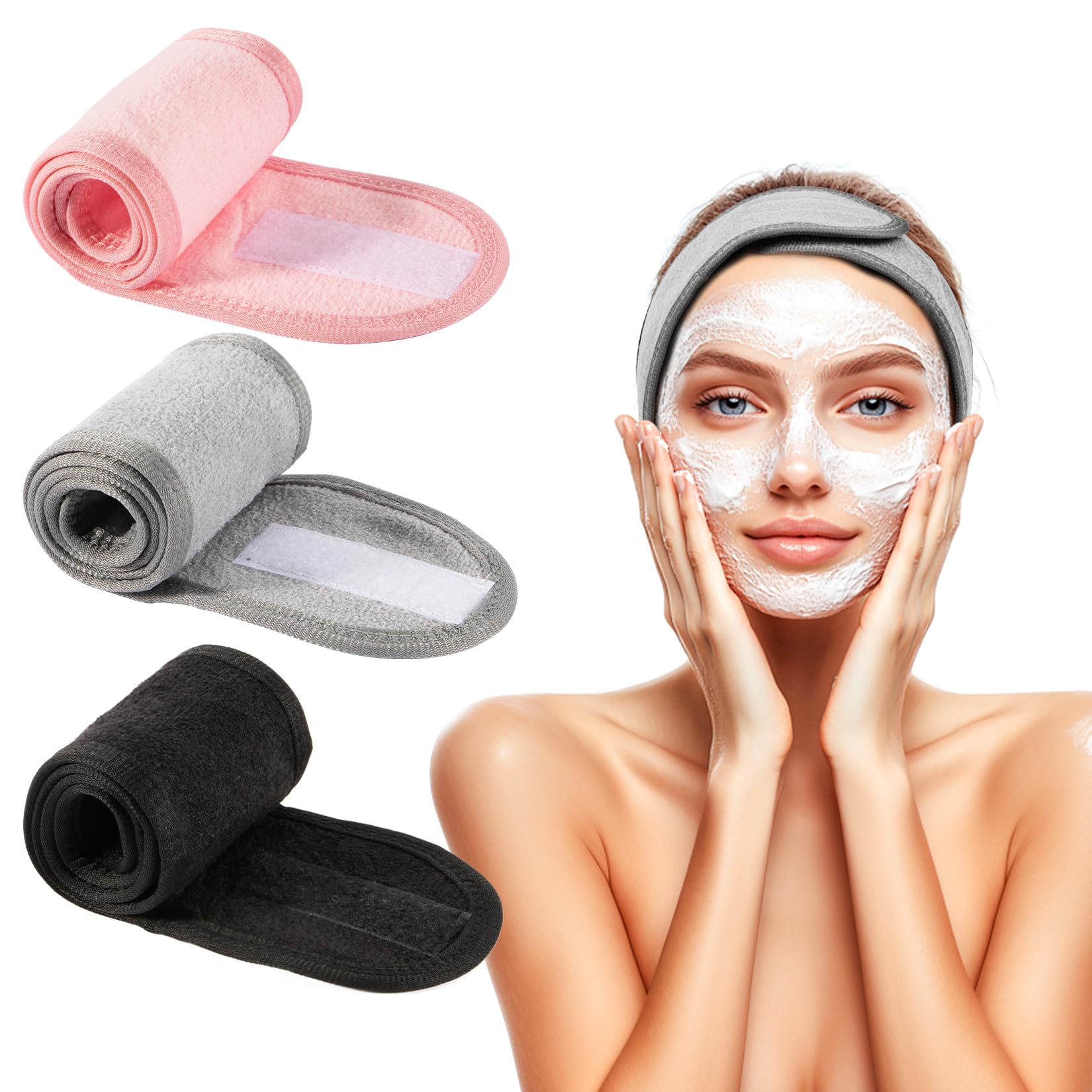 Paquete de 3 diademas de spa facial para mujer, ajustable, antideslizante, para lavar la cara, maquillaje y ducha, envoltura suave