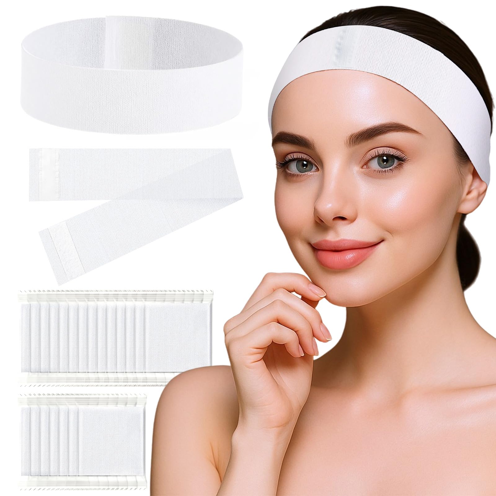 100 diademas faciales desechables para mujeres, envueltas individualmente, elásticas, para maquillaje, para tratamientos faciales,