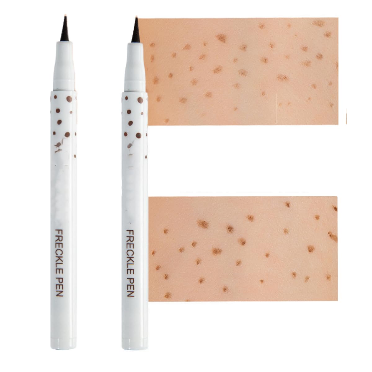 Lápiz corrector facial con diseño de pecas, natural, impermeable, largo, pecas, 2 unidades, color marrón claro