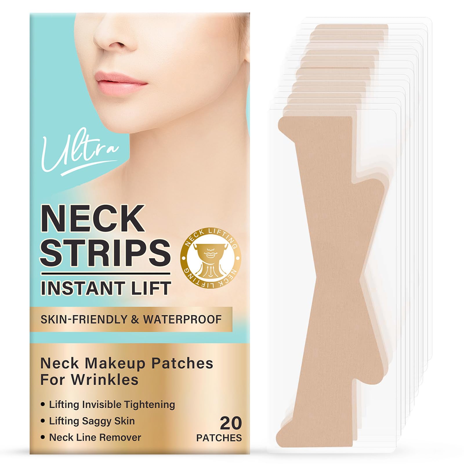 maxboss Parches antiarrugas para el cuello, tiras elásticas para el cuello, cinta antiarrugas instantánea para levantar la piel su