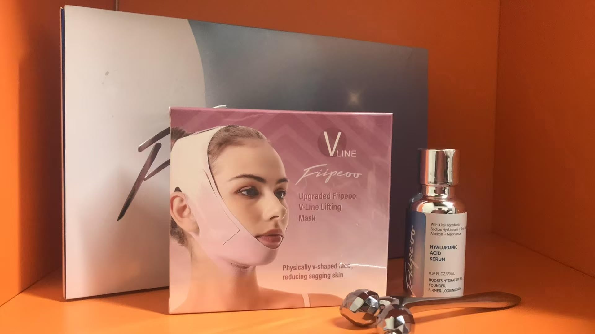 Kit de elevación en V para mujer, correa de doble barbilla con rodillo facial 3D y suero de ácido hialurónico para levantamiento f
