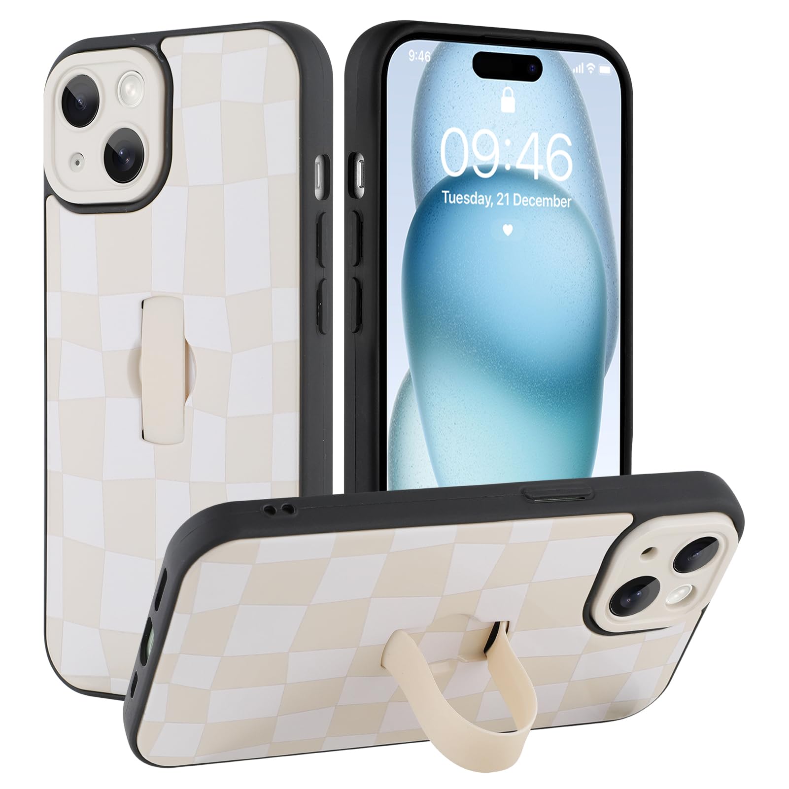 SOKAD Funda para iPhone 15 con correa para el dedo, bonita funda de tablero de ajedrez a cuadros con mano para mujeres y hombres,