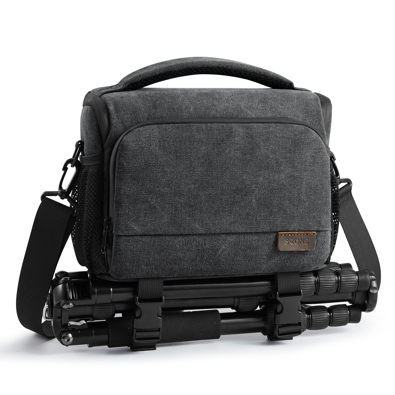S-ZONE Bolsas para cámara para fotógrafos, bolsa de hombro pequeña cruzada DSLR SLR SLR, sin espejo, con soporte para trípode, cre