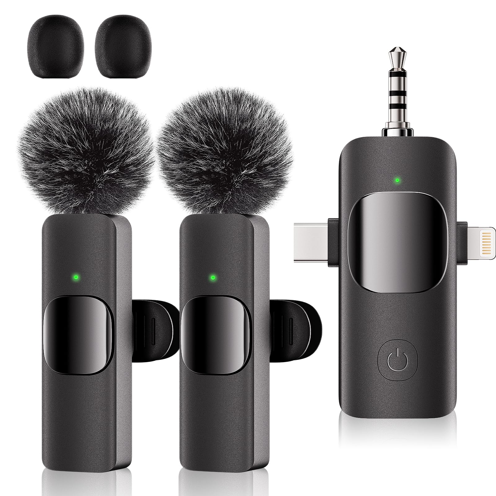 Micrófono Lavalier inalámbrico 3 en 1 para iPhone, Android y cámara, mini micrófono USB-C con reducción de ruido para , tra