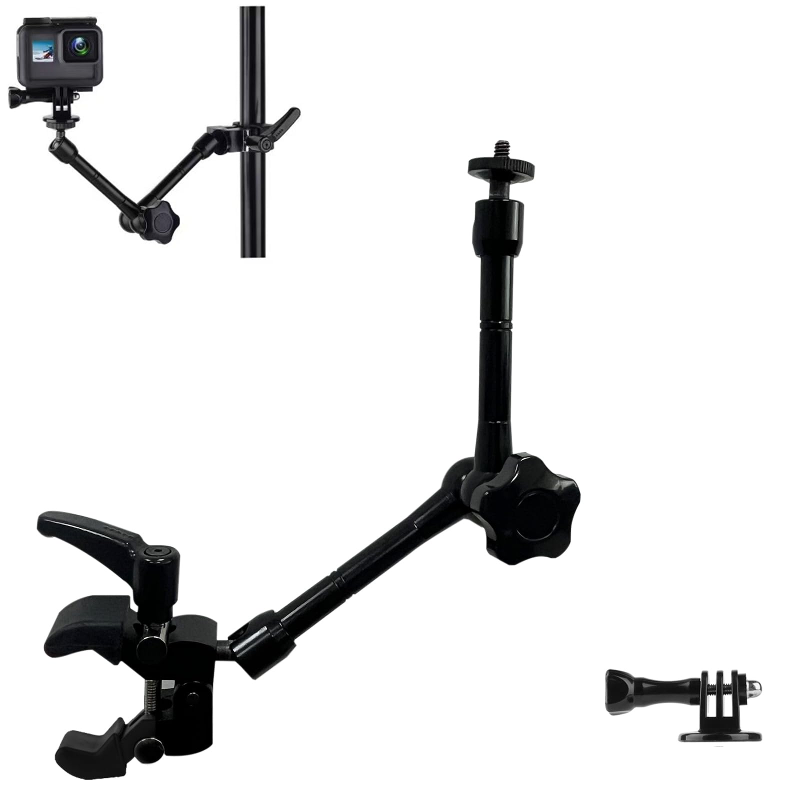 Soporte de abrazadera de cangrejo para cámara, soporte de brazo mágico ajustable de aluminio de 10 pulgadas 360°, rosca de 1/4 a 2