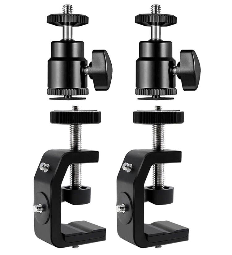 UTEBIT Soporte de cámara superior con tornillo de 1/4 pulgadas, cabezal de bola de 360° y abrazadera en C, soporte de escritorio a