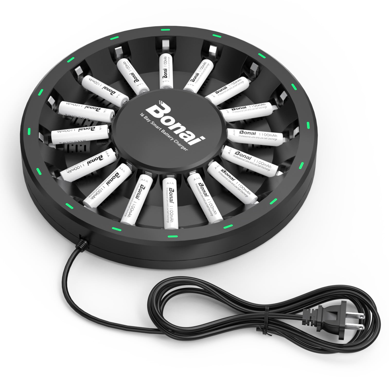 BONAI – Baterías recargables AAA con cargador, paquete de 16 pilas recargables AAA y cargador de batería de 16 bahías para AA AA (