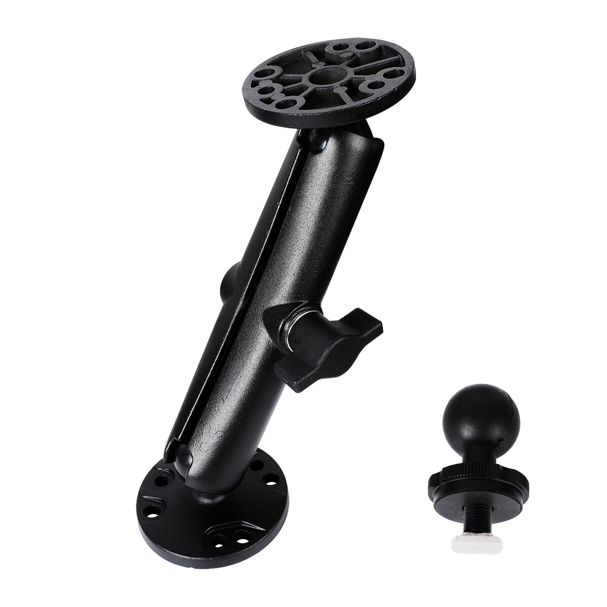 Soporte de bola doble de aluminio de 1 pulgada con dos placas redondas AMPS, brazo de aleación de aluminio extendido de 5.9 pulgad