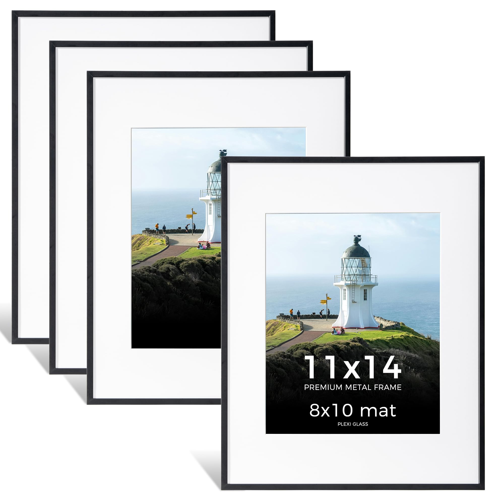 Axeman Portarretratos negro de 11 x 14 pulgadas, marco de aluminio de alta gama de 11 x 14 pulgadas con paspartú para 8 x 10 pulga