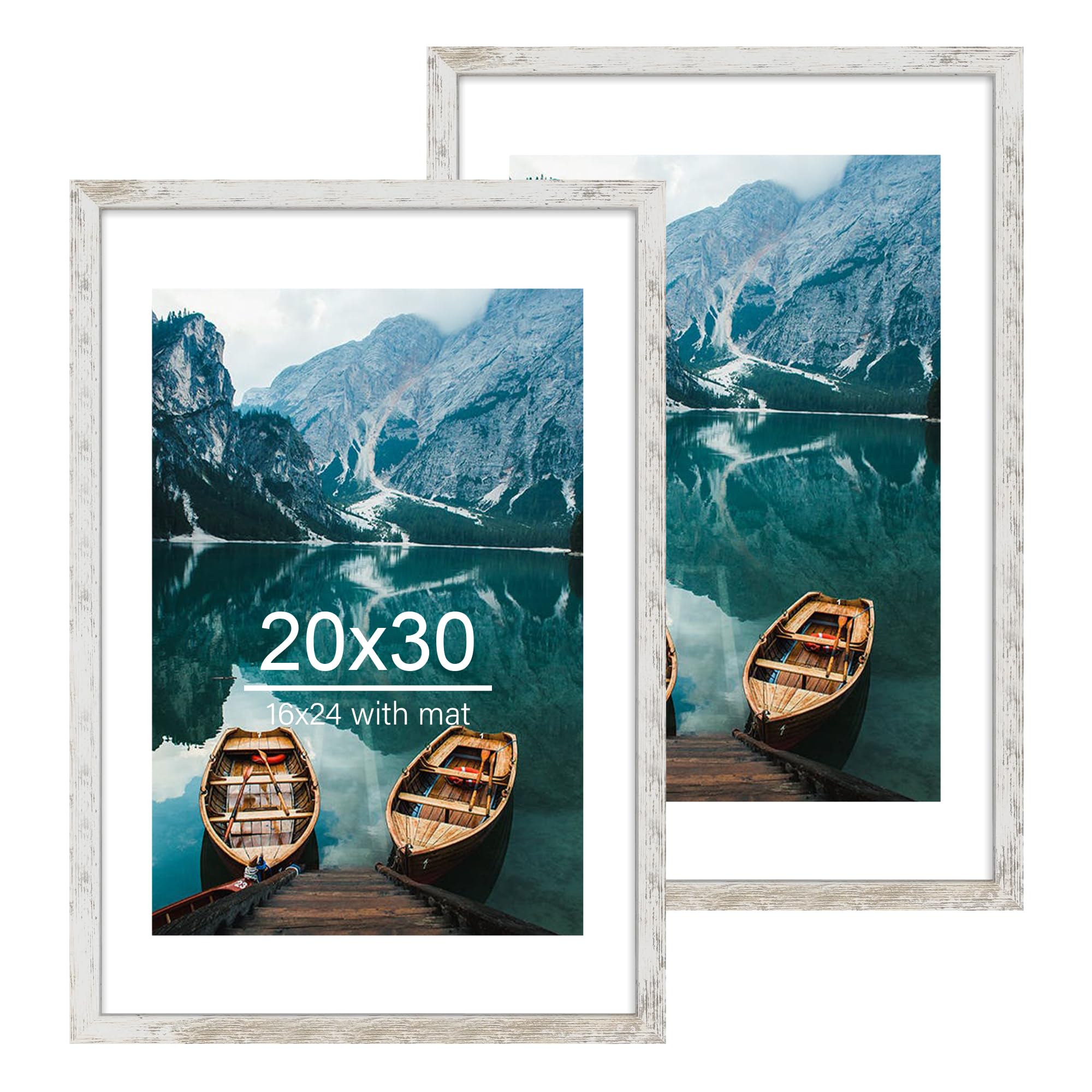 Juego de 2 marcos de 20 x 30 pulgadas, estilo madera blanca envejecida, para mostrar imágenes de 16 x 24 pulgadas con paspartú o p