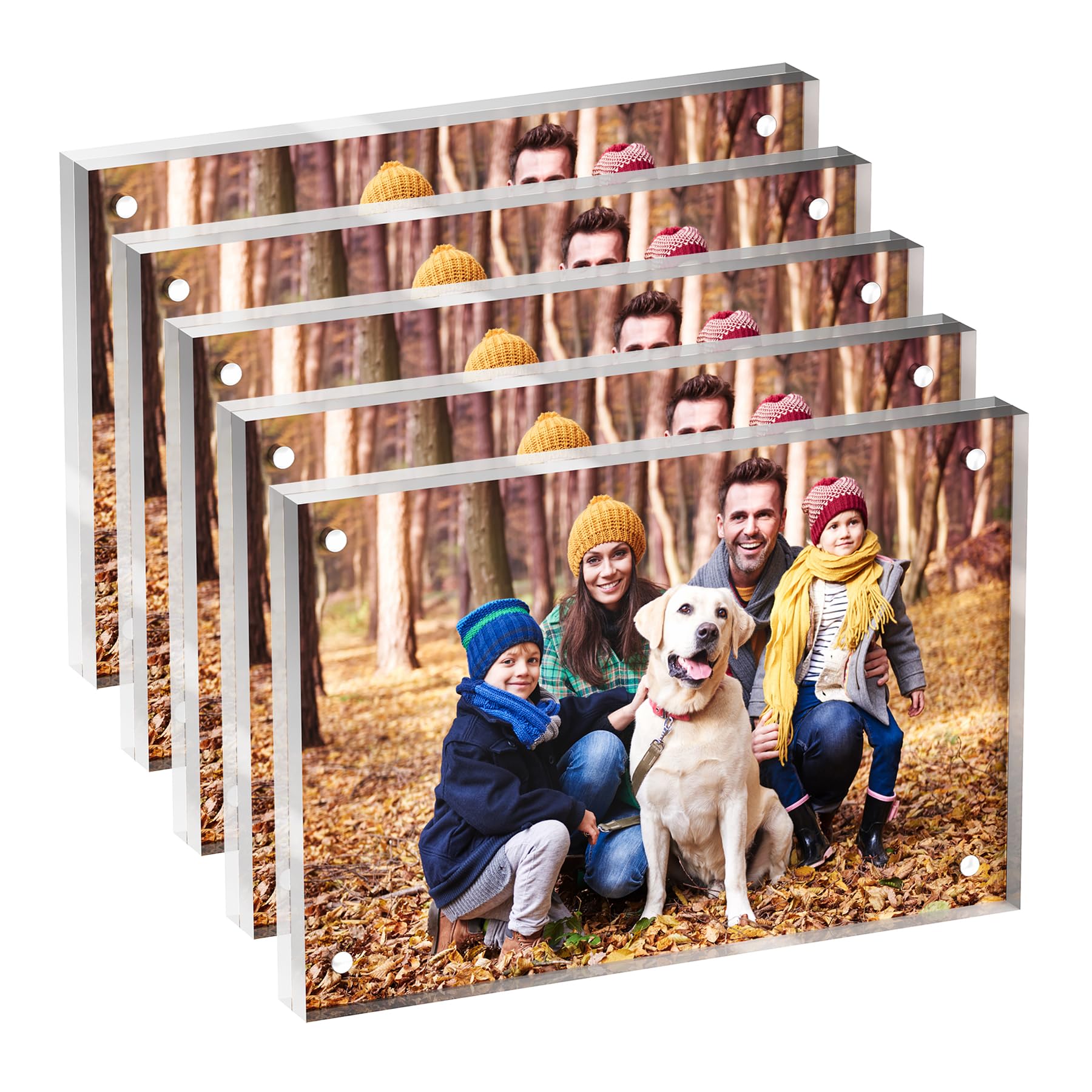 Paquete de 5 portarretratos acrílicos de 5 x 7, marcos de fotos magnéticos transparentes independientes de doble cara, sin marco,