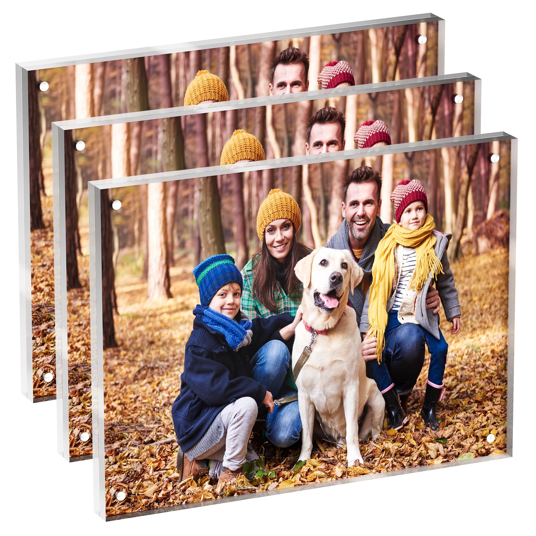 Paquete de 3 portarretratos acrílicos de 6 x 8 pulgadas, transparente, independiente, de doble cara, sin marco, magnéticos, para d