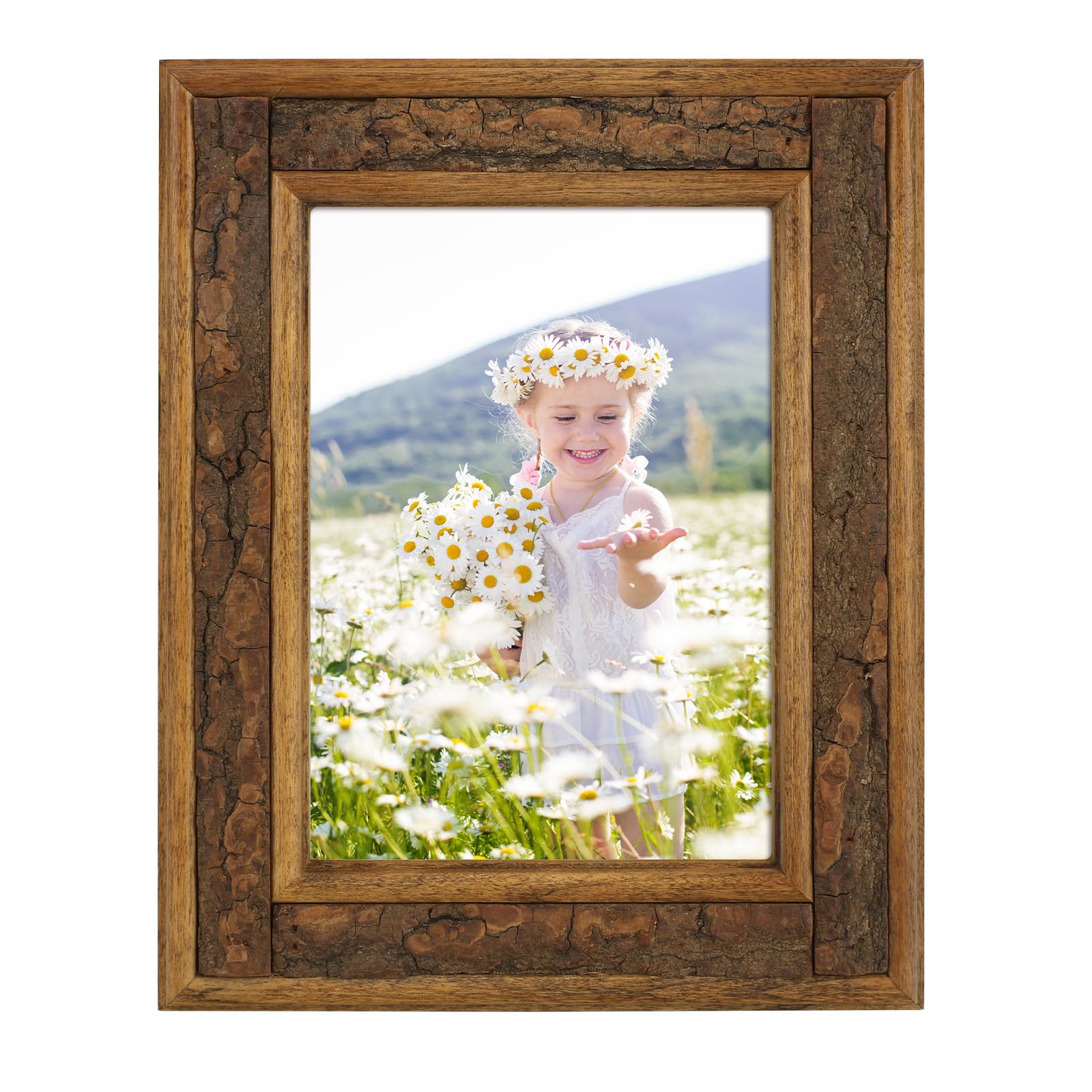 1 Pack 5×7 Natural Brown Picture Frame with Real Bark Surface&Clear Real Glass Cover .Solid Wood Photo Frame for Wall and Tabletop