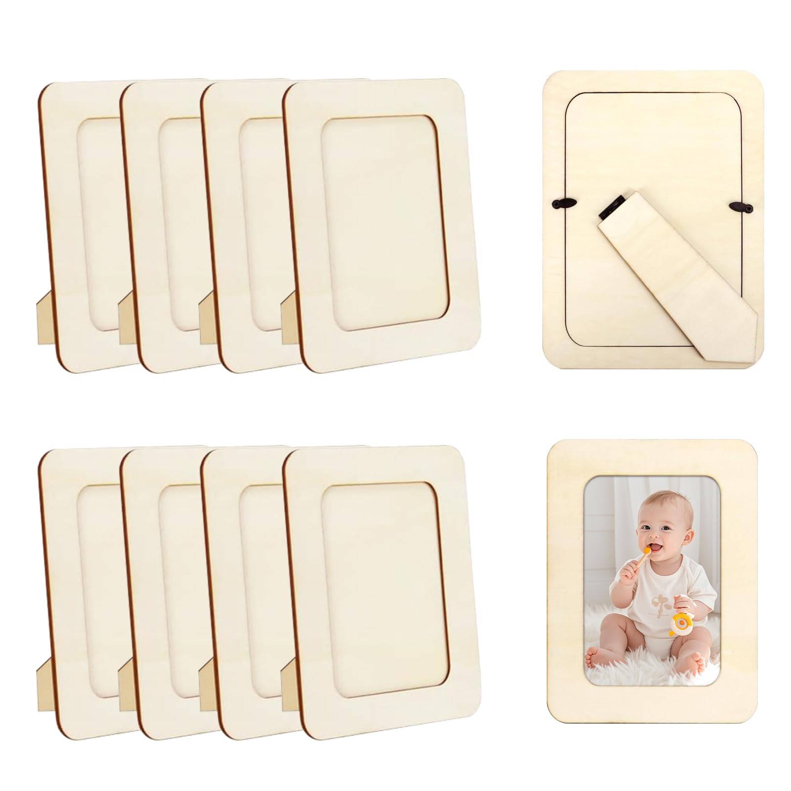 10 Pack Unfinished Wooden Picture Frames For 4×6 Photos – DIY Standing Wood Frame Bulk For Crafts Painting Wedding Birthday Party