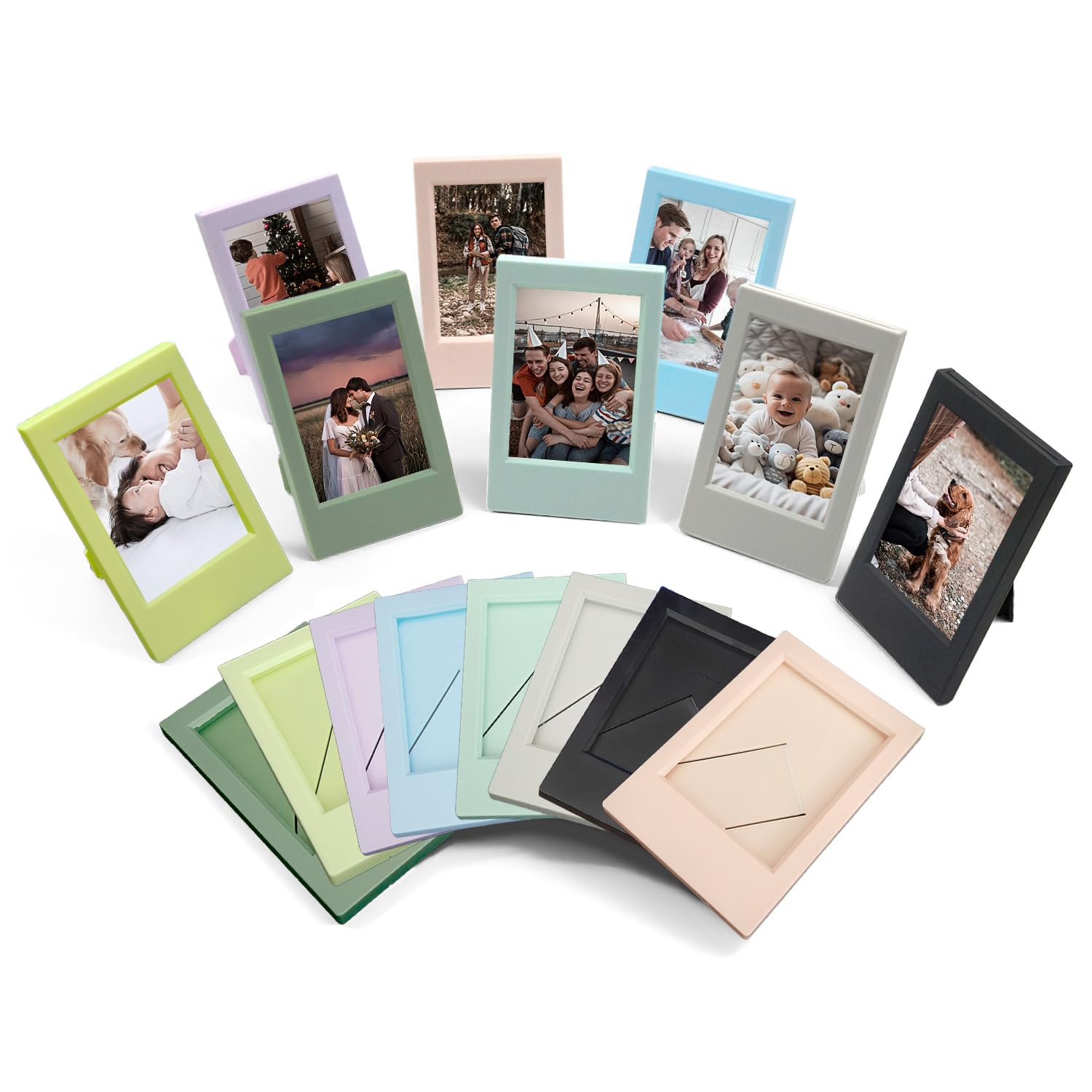 Paquete de 16 mini marcos de fotos de 2 x 3, colorida exhibición de fotos de mesa pequeña, compatible con Fujifilm Instax Mini y P