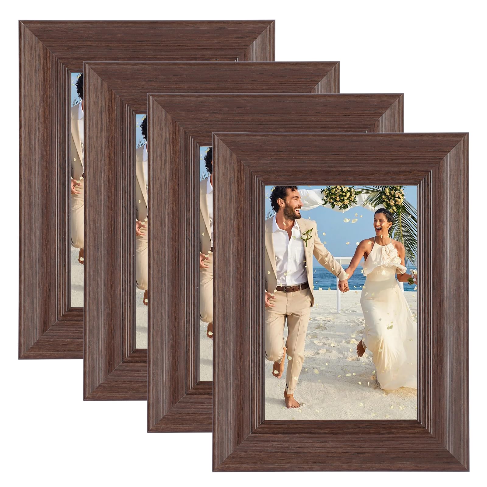 Juego de 4 portarretratos de 8 x 12 pulgadas, marco marrón rústico de alta definición, 8 x 12 marcos de fotos para exhibición de m