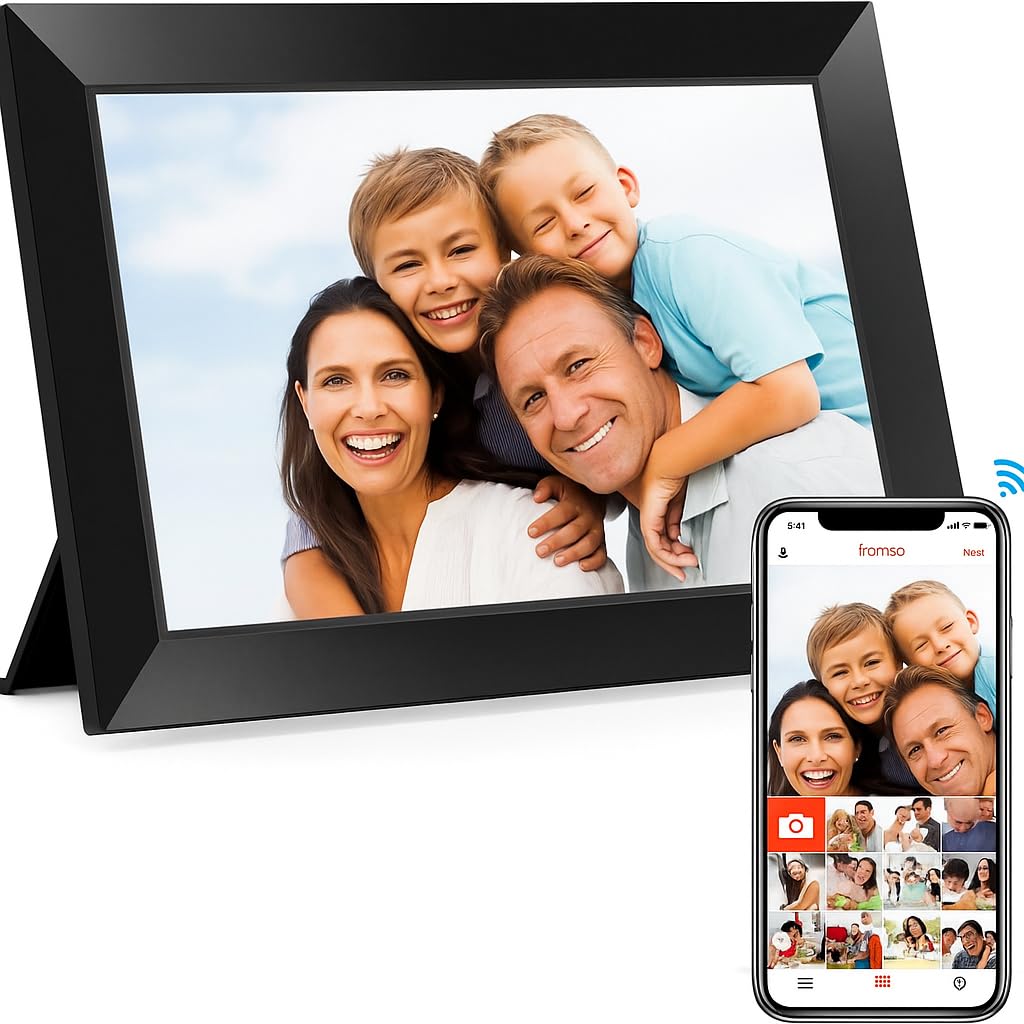 Frameo 10.1 Inch WiFi Digital Picture Frame, 1280×800 HD IPS Touch Screen Photo Frame Electronic, 32GB Memory, Auto-Rotate, Wall M