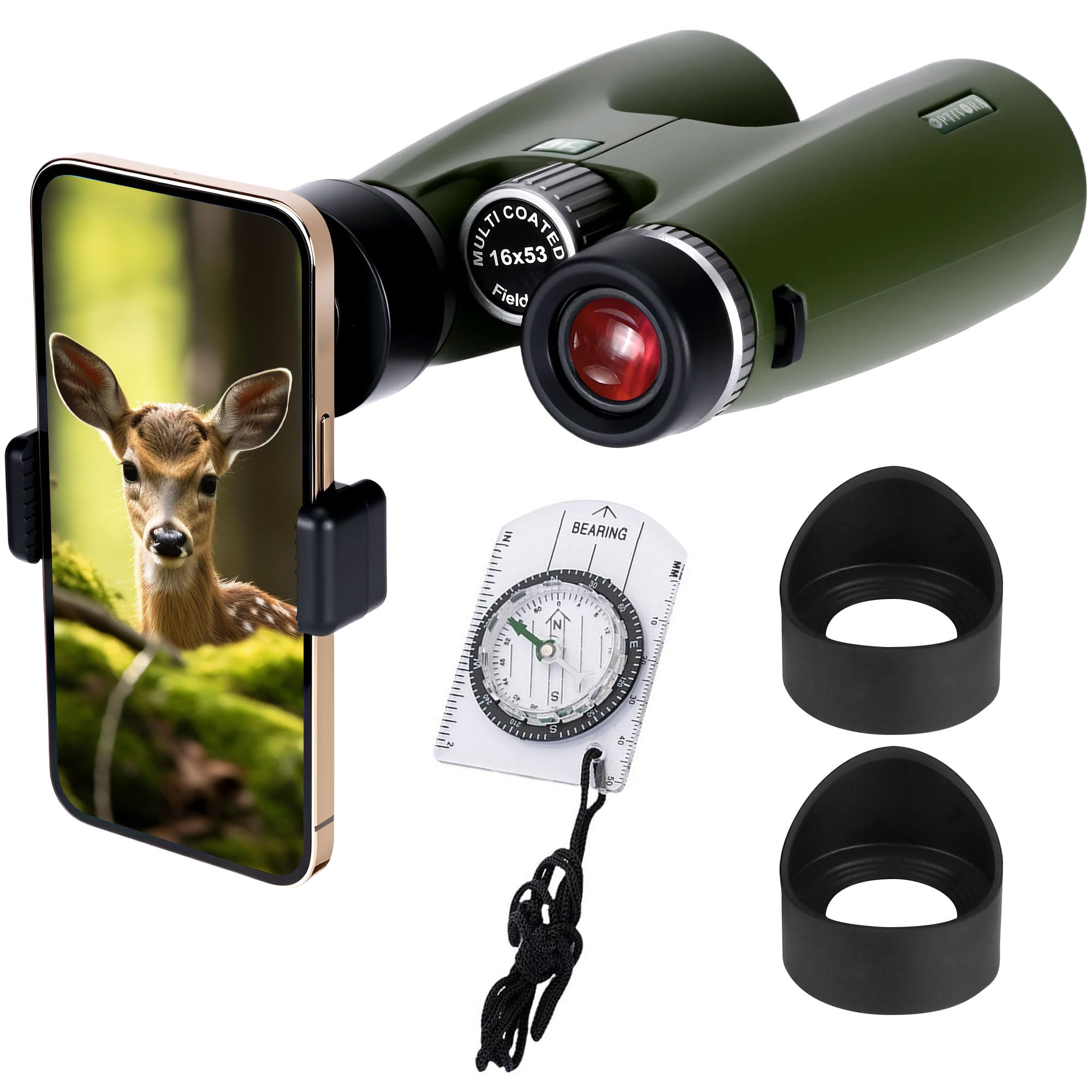 Adorrgon Binoculares HD de 15 x 45 para adultos de alta potencia con adaptador de teléfono, trípode y adaptador de trípode, binocu