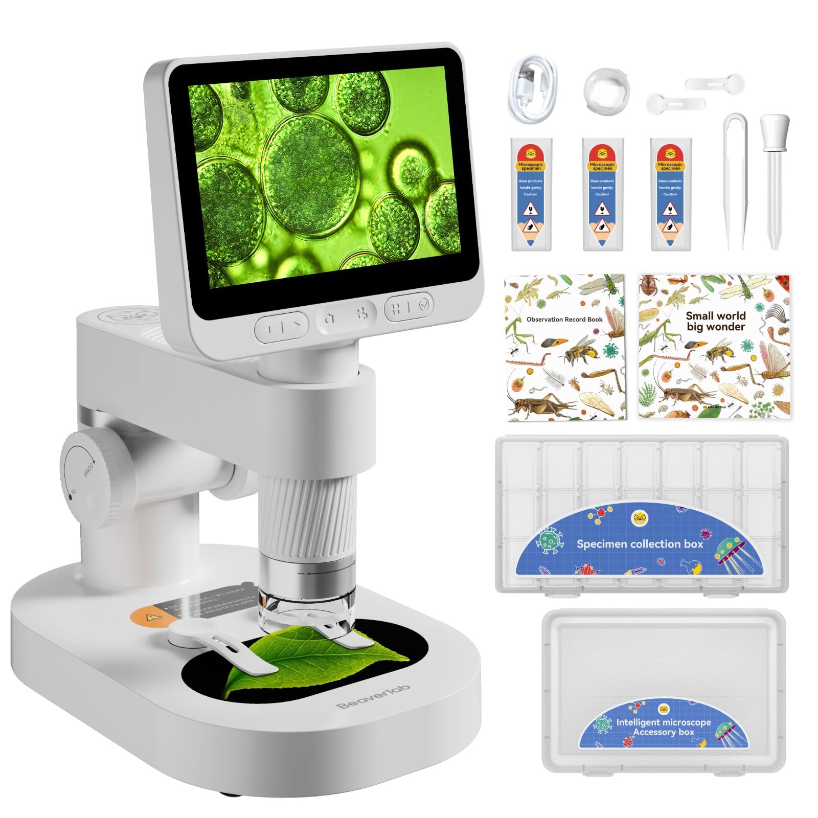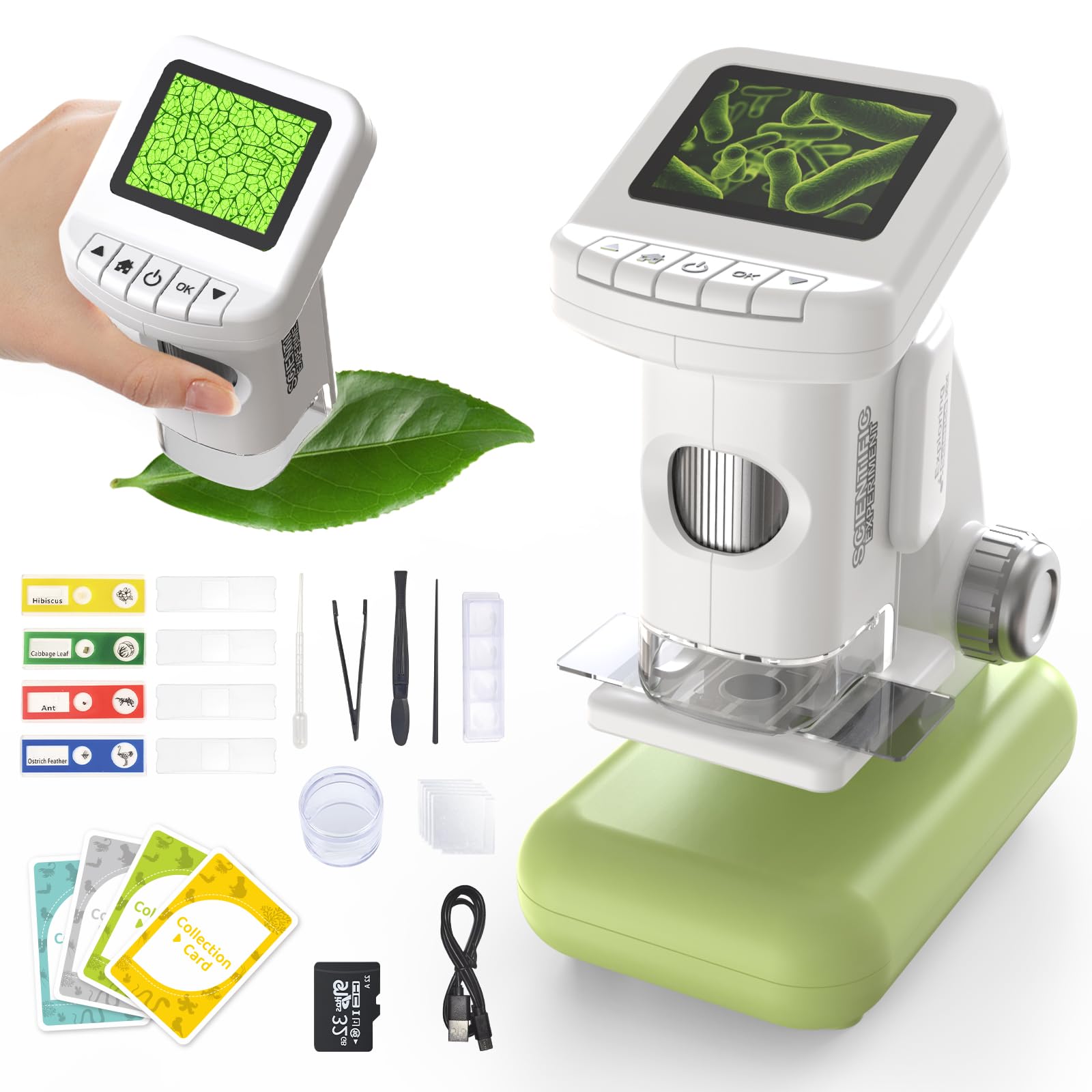 Microscopio para niños 1000X HD con pantalla de 2 pulgadas, microscopios portátiles de mano para niños | Kit de ciencia para edade