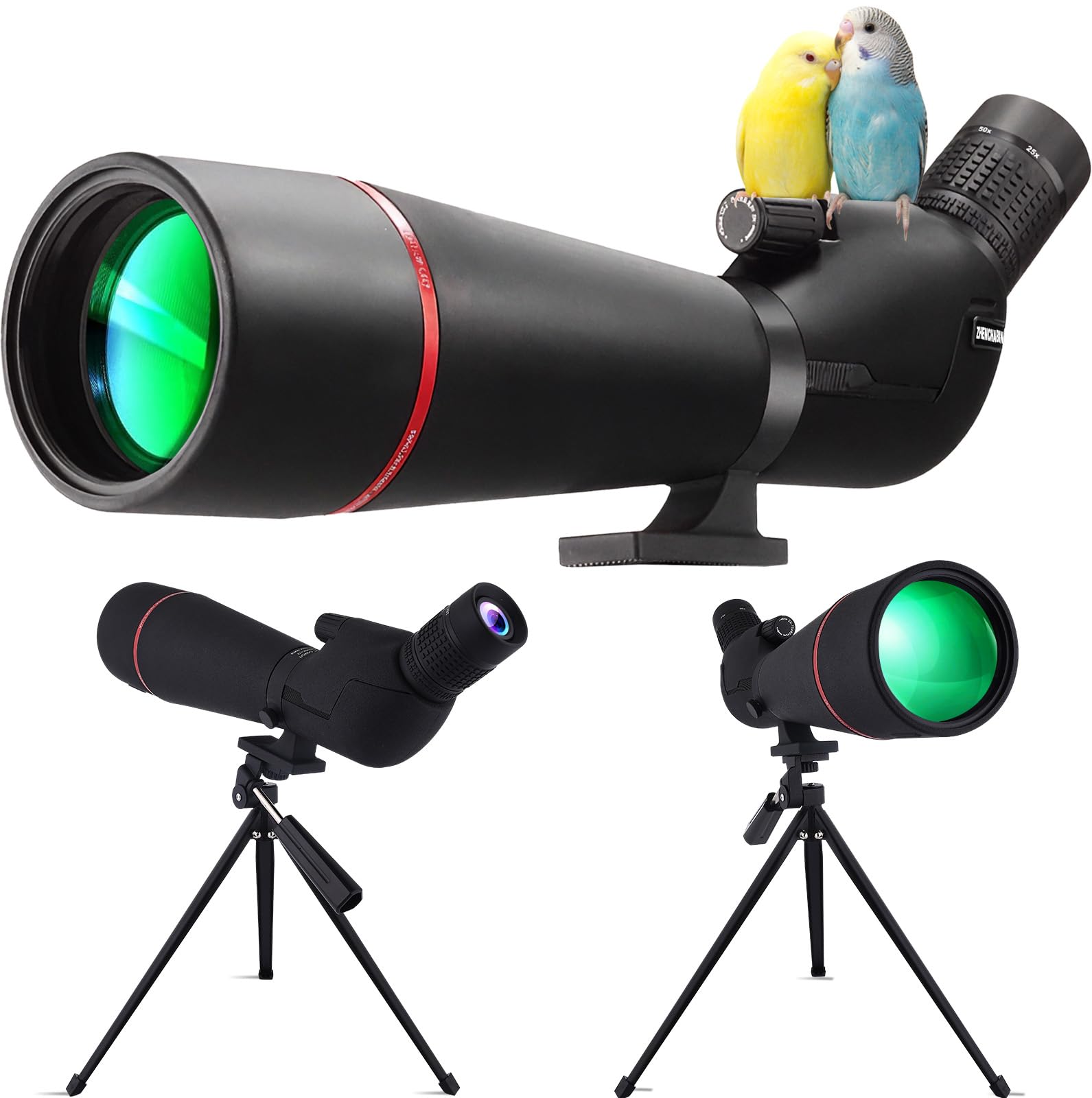 Visores de detección de 25-75 x 80 pulgadas con trípode y adaptador de teléfono, mira con prisma BAK4, lente FMC, alcance impermea