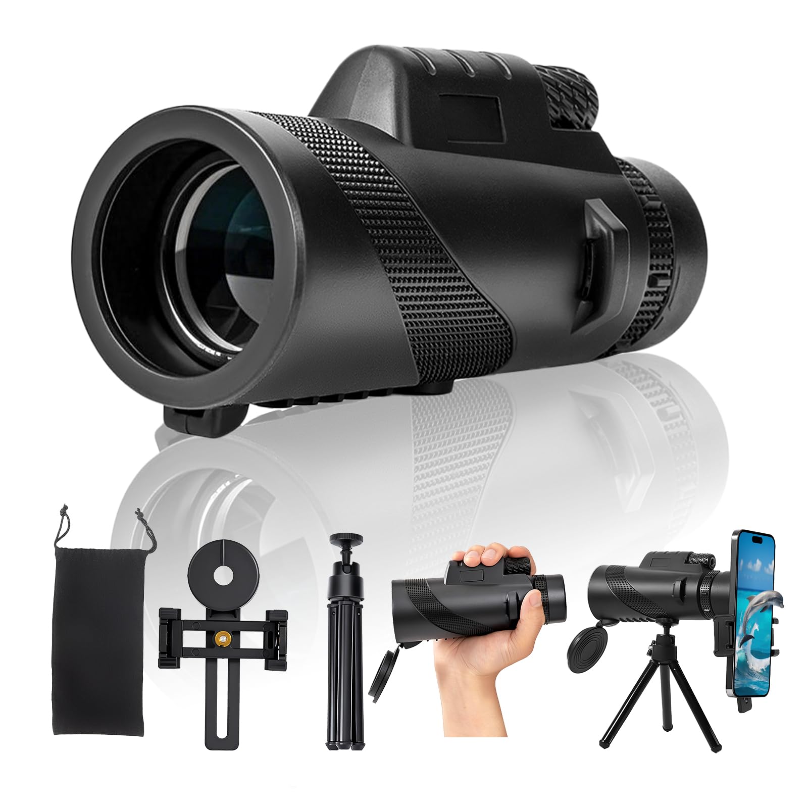 Telescopio monocular con adaptador para teléfono inteligente, presenta claramente la belleza de la naturaleza para viajes, camping