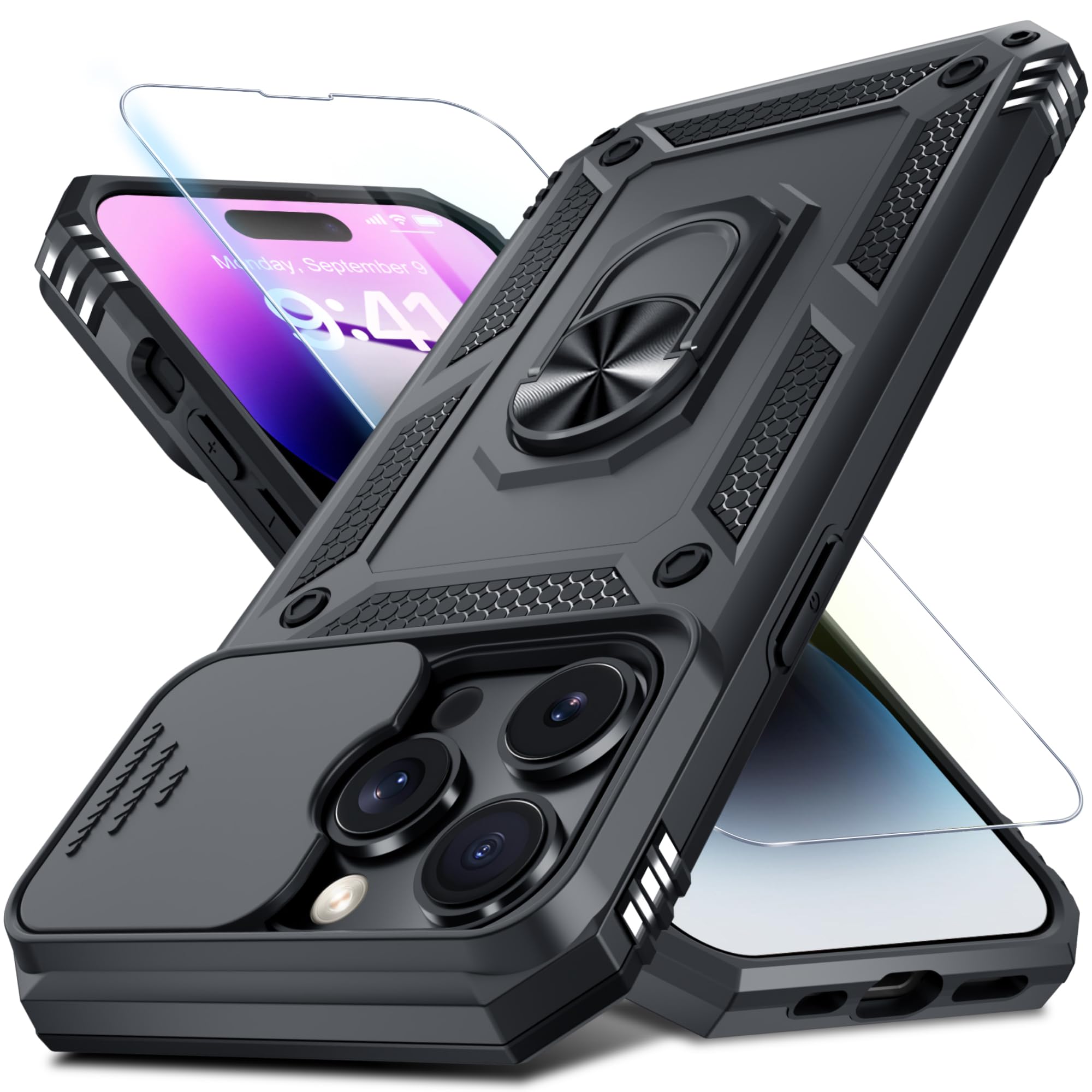 Janmitta Funda para iPhone 14 Pro Max integrada con protector de pantalla y protector de pantalla, resistente a prueba de golpes,