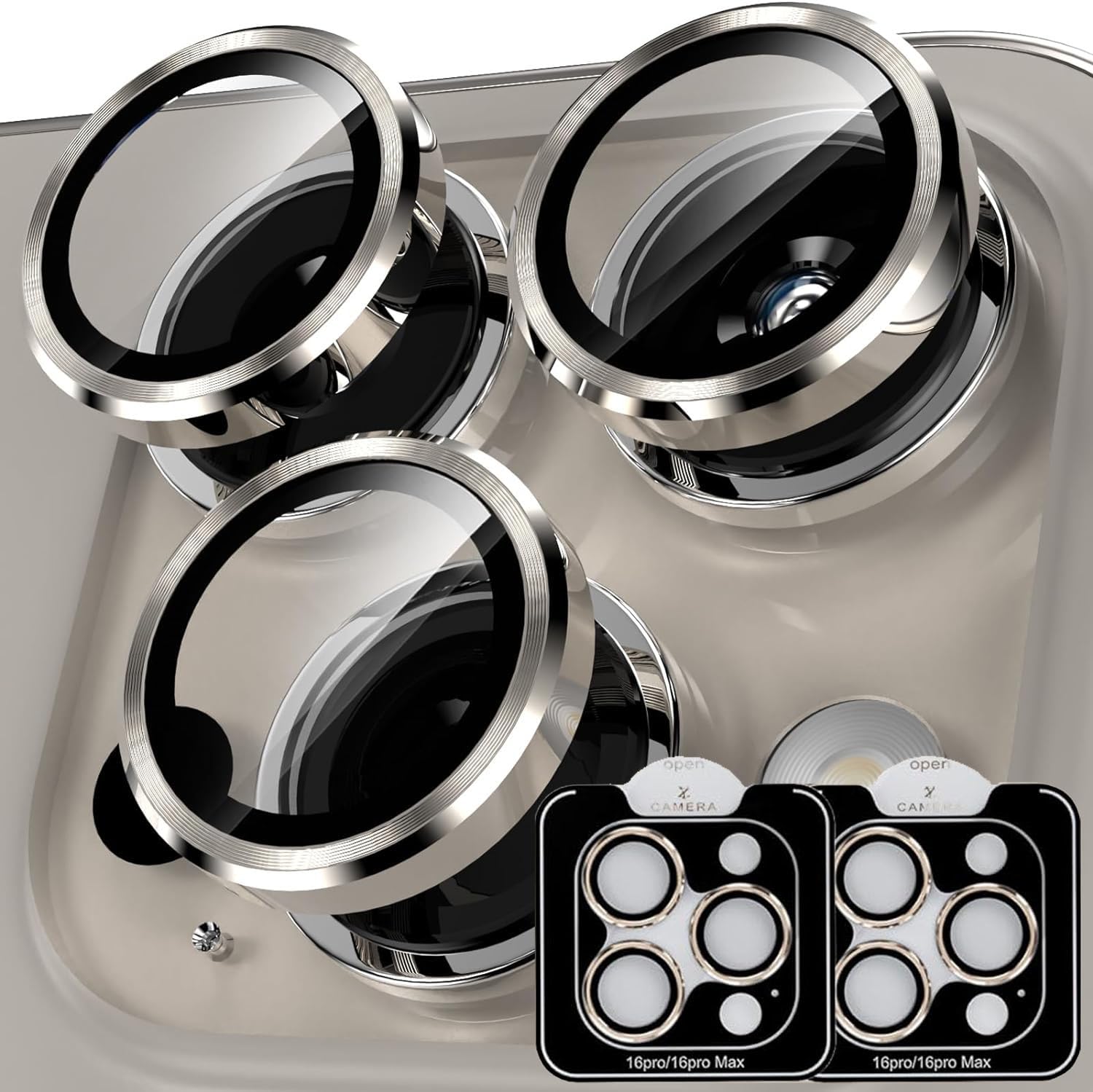 Paquete de 2 protectores de lente de cámara para iPhone 15 Pro/[iPhone 15 Pro Max], vidrio templado [bandeja de fácil instalación]