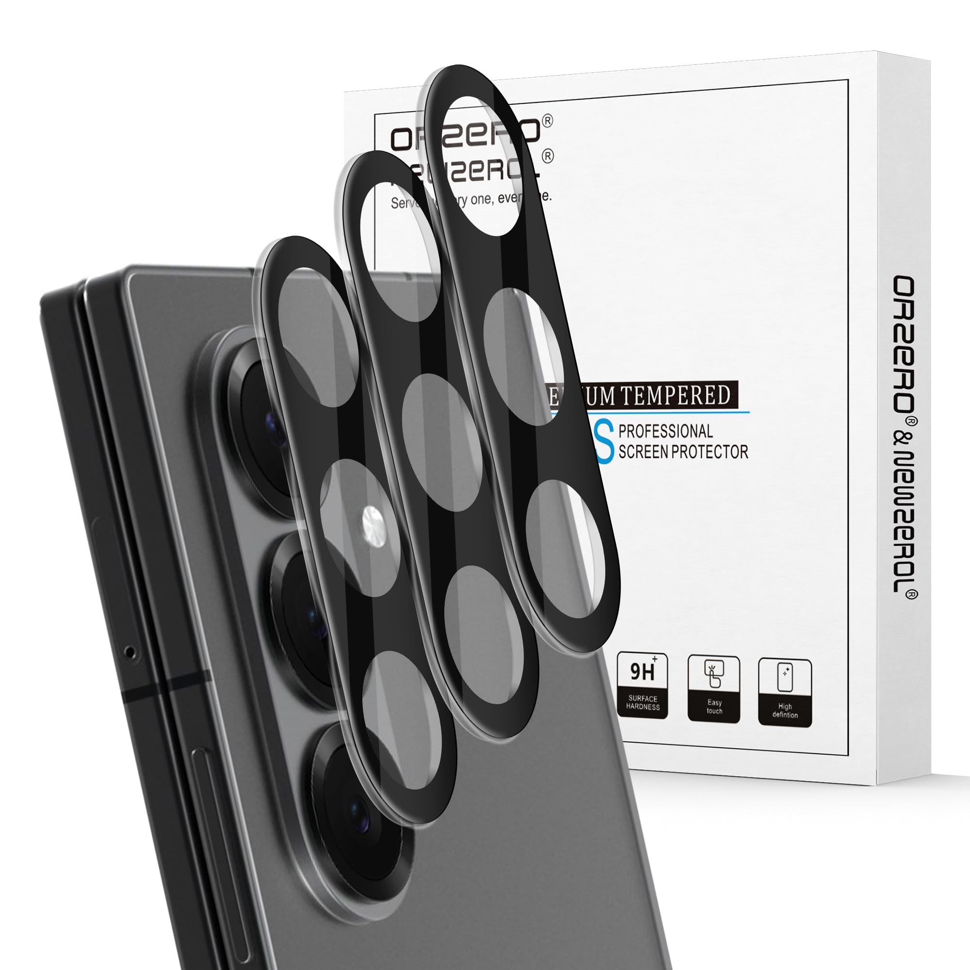Orzero Paquete de 3 protectores de lente de cámara compatible con Samsung Galaxy Z Fold 7, protector de cámara de vidrio templado