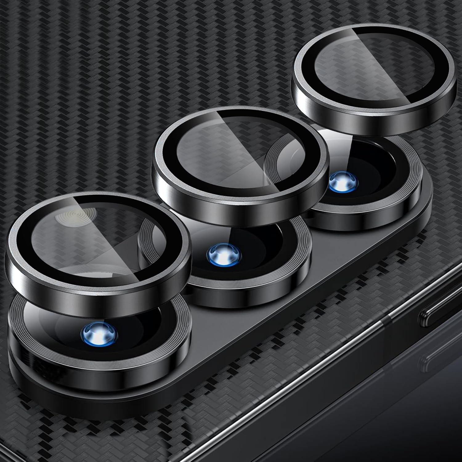 Pelican Protector de lente de cámara con anillos de aluminio para iPhone 16 Pro Max/iPhone 16 Pro – Vidrio templado 9H – Resistent