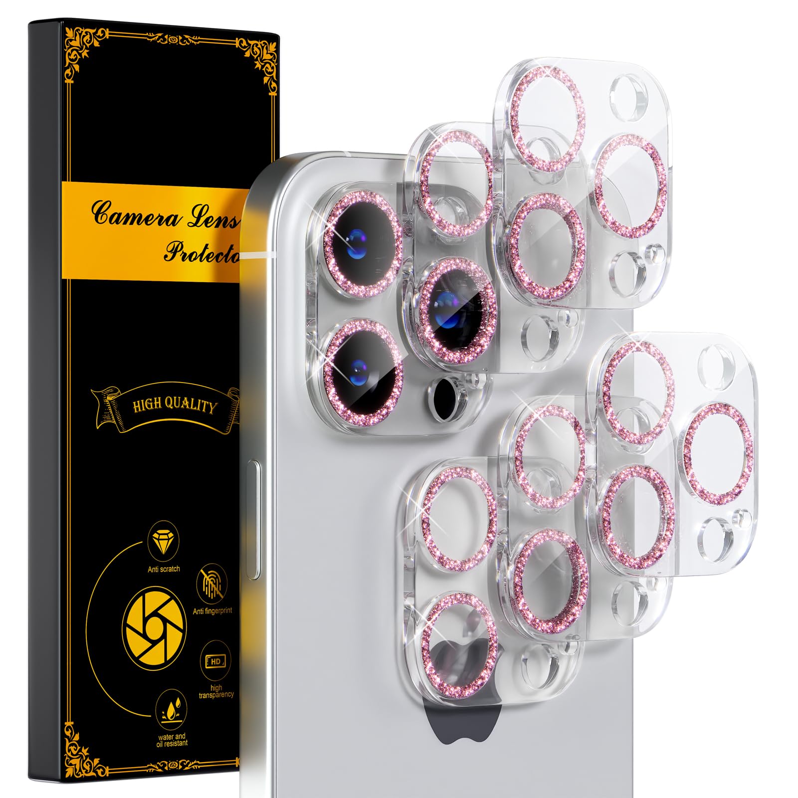 beuxece Paquete de 6 protectores de lente de cámara iPhone 16 Pro/iPhone 16 Pro Max [protección contra caídas] [compatible con fun