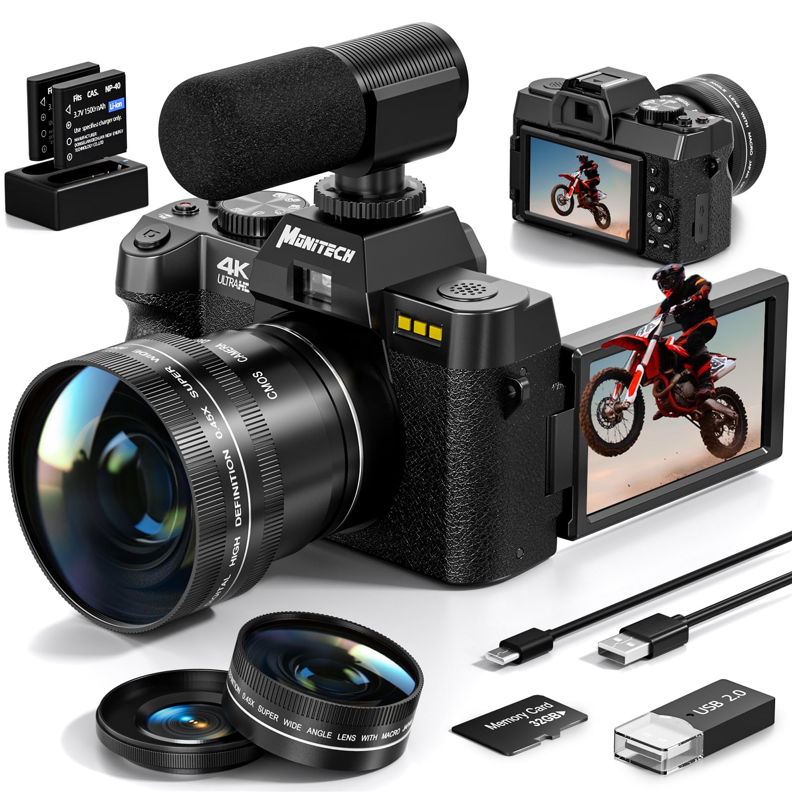 Cámaras digitales para fotografía y video 4K, cámara de vlogging de 48 MP para con pantalla abatible de 180°, zoom digital