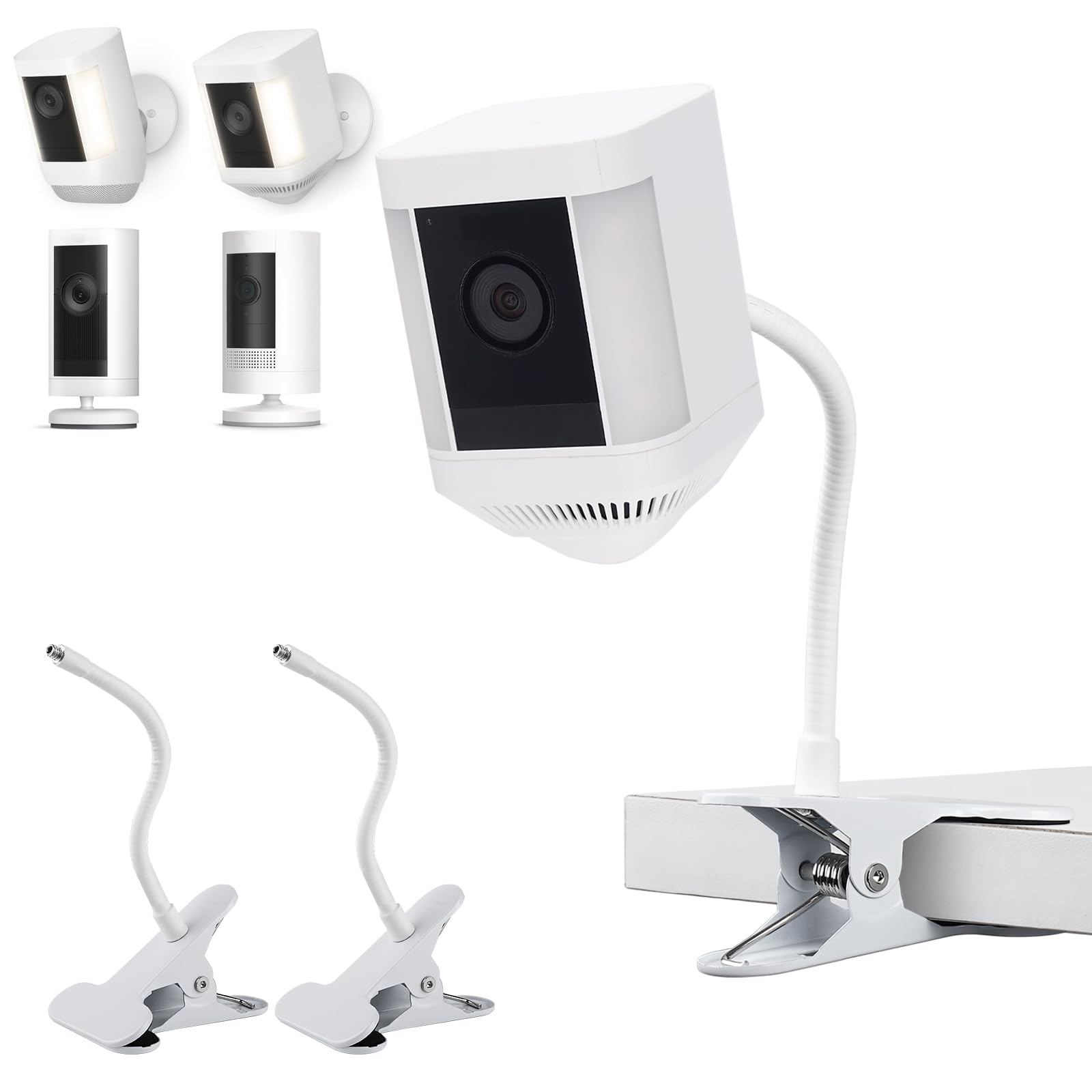 Soporte de montaje giratorio flexible universal para anillo/parpadeo/Wyze/Eufy/Arlo/Google Nest y otras cámaras de seguridad (blan