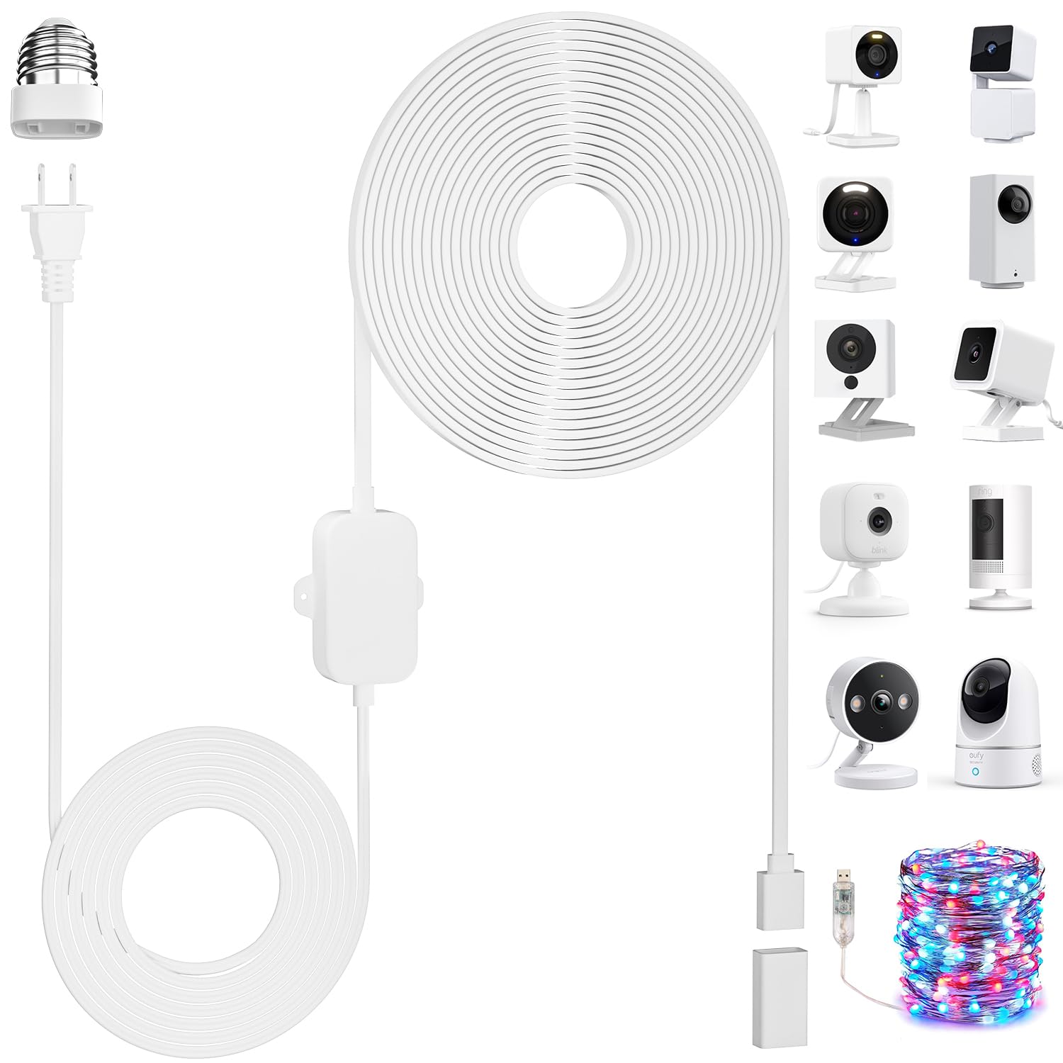 UYODM Cable de alimentación de 20 pies para cámara de seguridad Wyze/parpadeo/anillo/eufy/Google nest Tapo, tiras USB LED y fácil