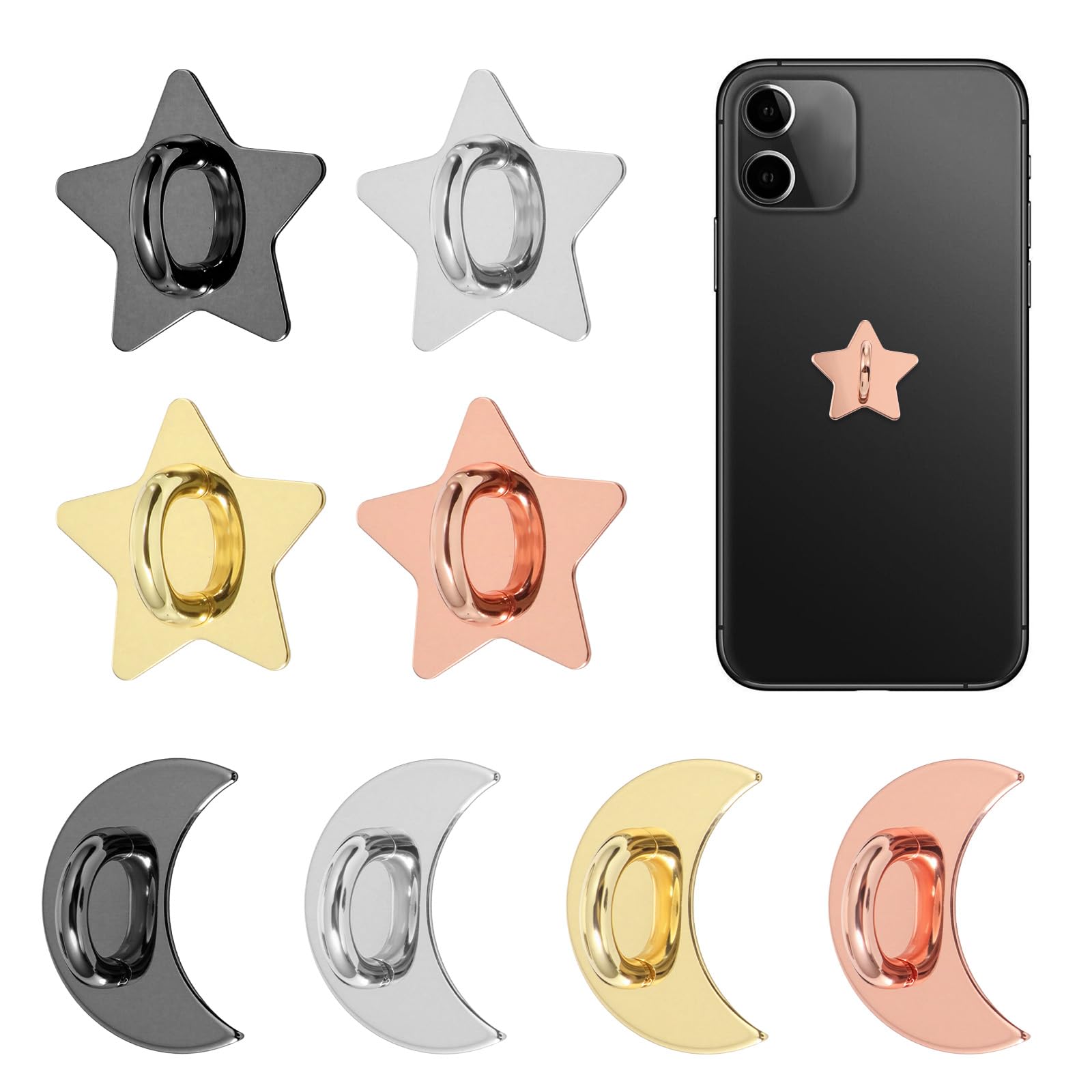 8 piezas de soporte de anillo de teléfono celular con diseño de estrellas y luna, gancho de agarre de metal para teléfono, gancho