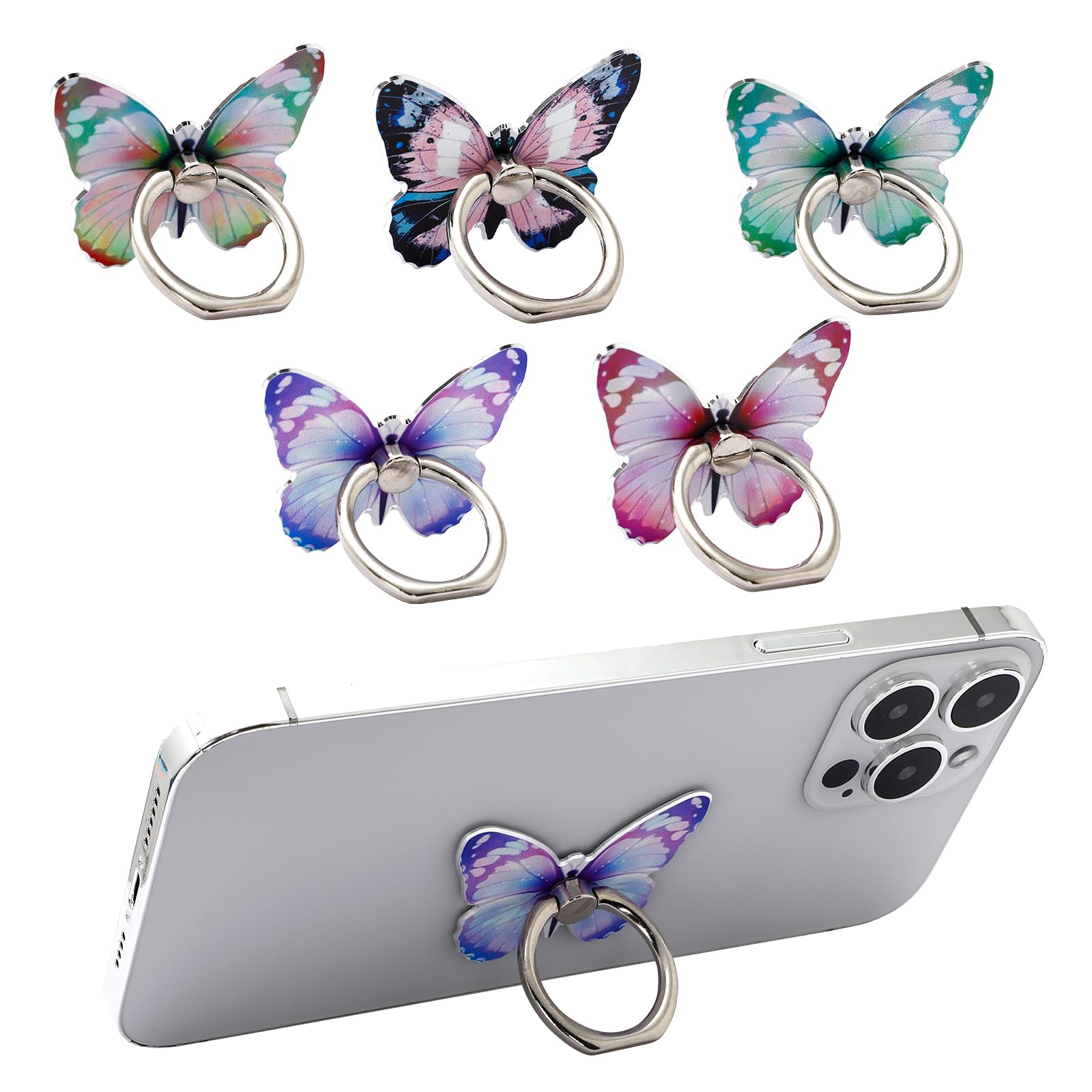5 soportes para anillo de teléfono celular con diseño de mariposa y rotación de 360°, diseño de dedo de metal pintado universal, c