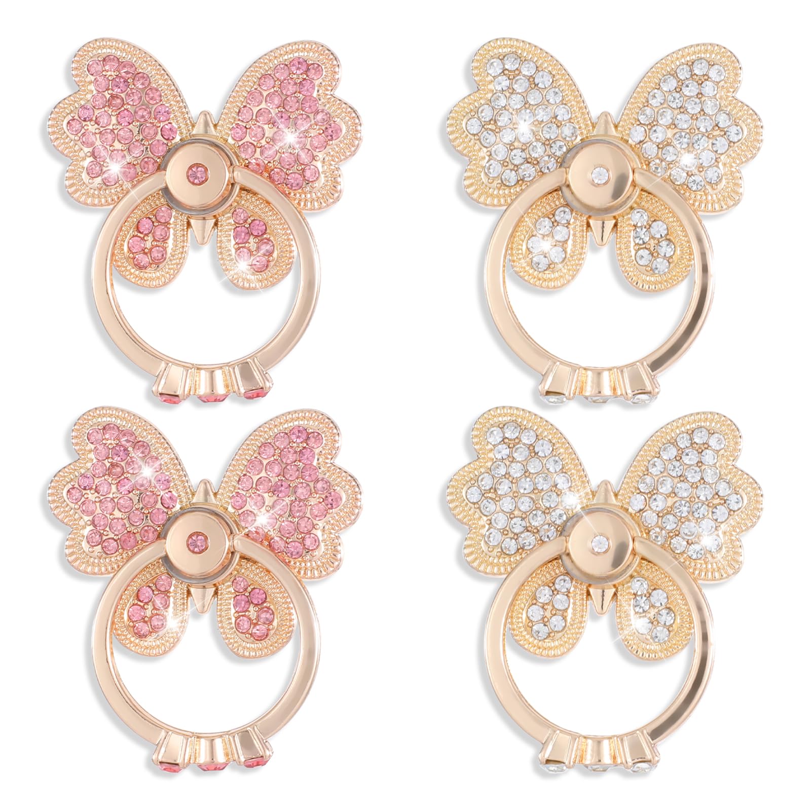 3 soportes para anillo de teléfono con diseño de mariposa, bonito agarre de metal con rotación de 360 grados para teléfono celular