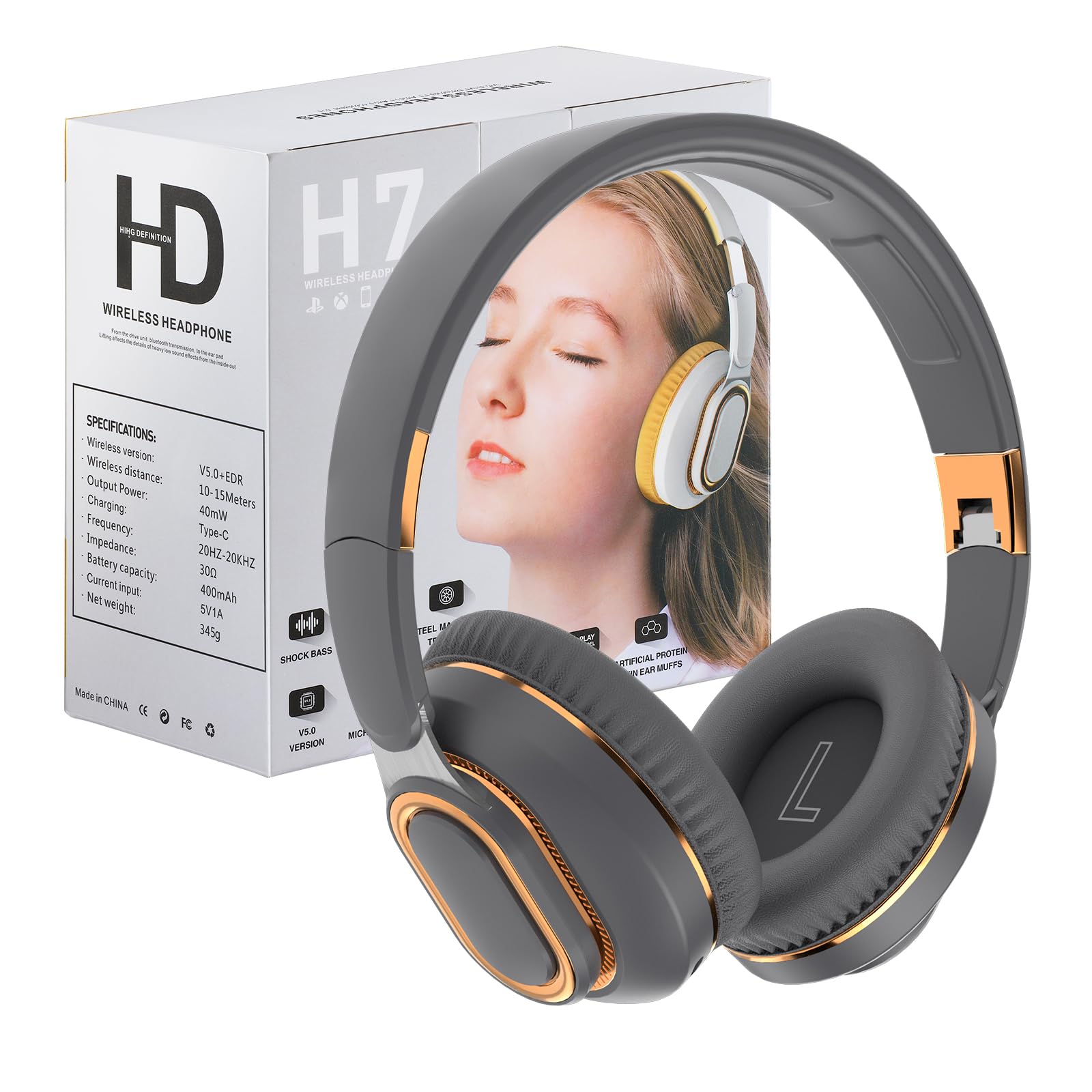 Foldable Bluetooth Headphones with Hidden Mic, Portable Over-Ear Wireless Headphones for Cell Phone, PC, Laptop, Suitable for Musi