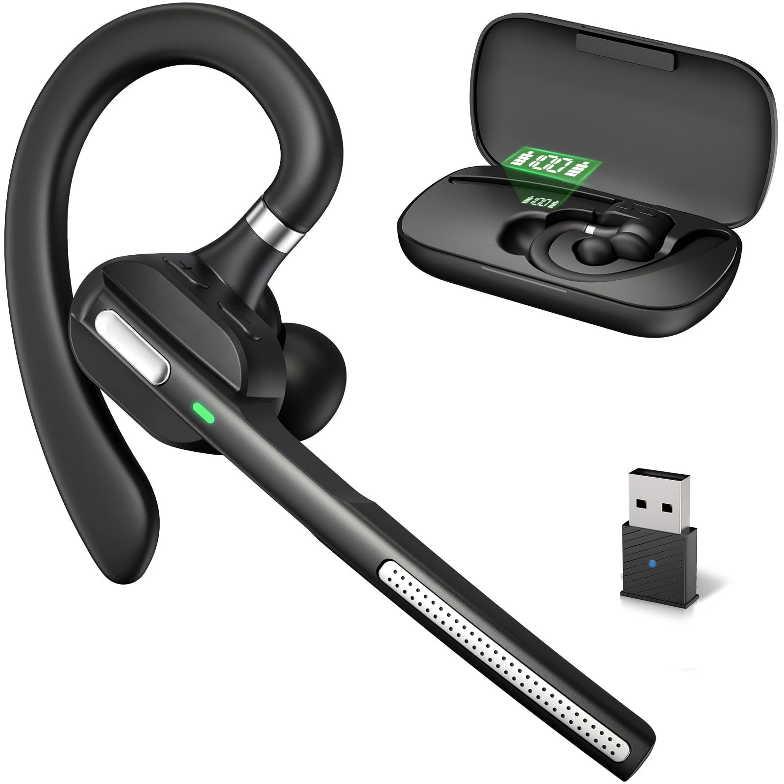 Auriculares inalámbricos Bluetooth de trabajo con micrófono, estuche de carga de 500 mAh, USB Dongle Call Micrófono con cancelació