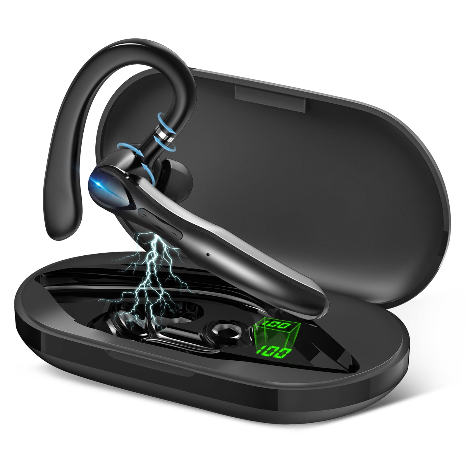 Auriculares Bluetooth, auricular Bluetooth inalámbrico con estuche de carga de 400 mAh, 55 horas de tiempo de conversación, micróf